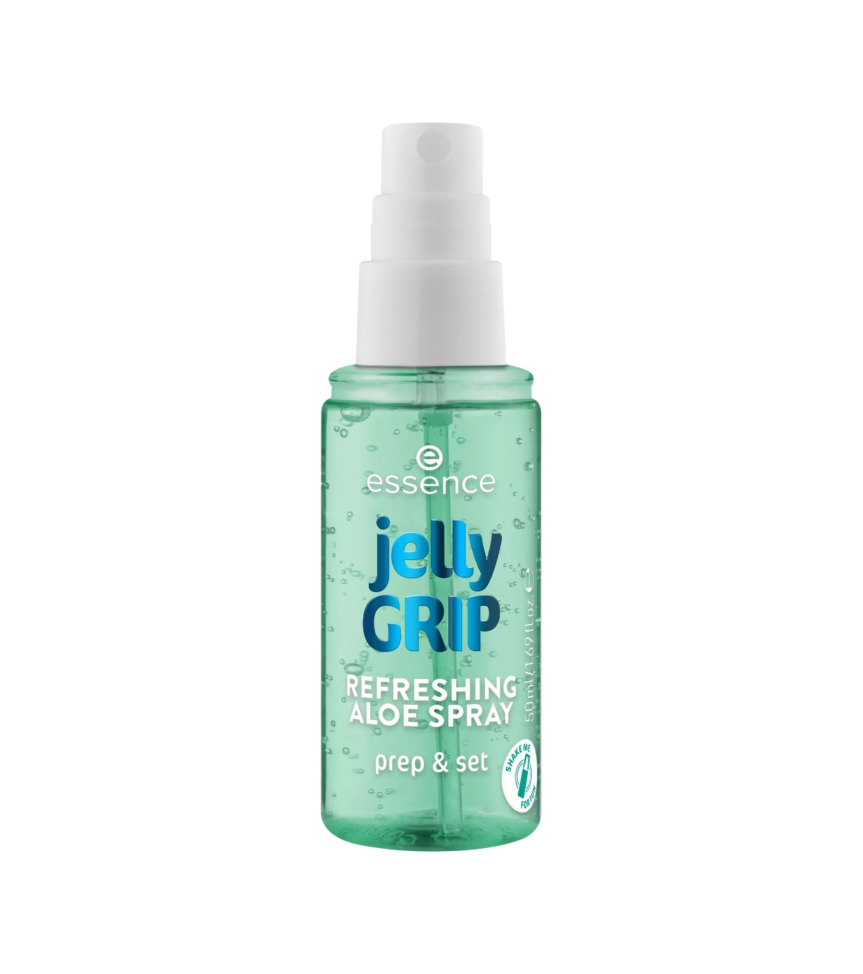 Jelly Grip Refreshing Aloe Spray es el spray 3 en 1 de essence que refresca, prepara e hidrata la piel mientras fija el maquillaje en un solo gesto.