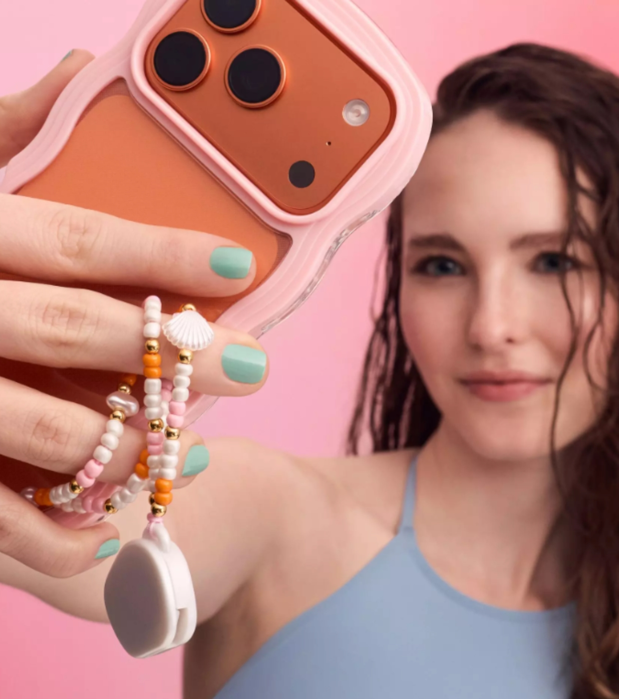 Su diseño con cuentas en tonos pastel, detalles dorados y pequeños charms marinos crea un look divertido y veraniego.