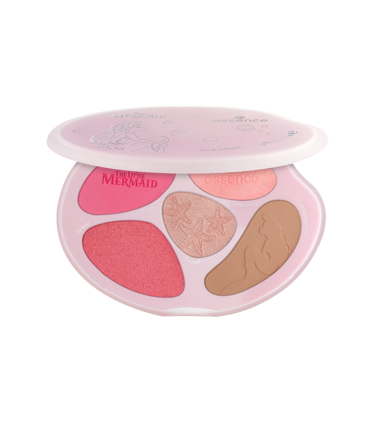 Realza tu rostro con la paleta de rostro inspirada en The Little Mermaid de essence x Disney, una paleta facial pensada para aportar color, luminosidad y un toque radiante digno de una sirena.