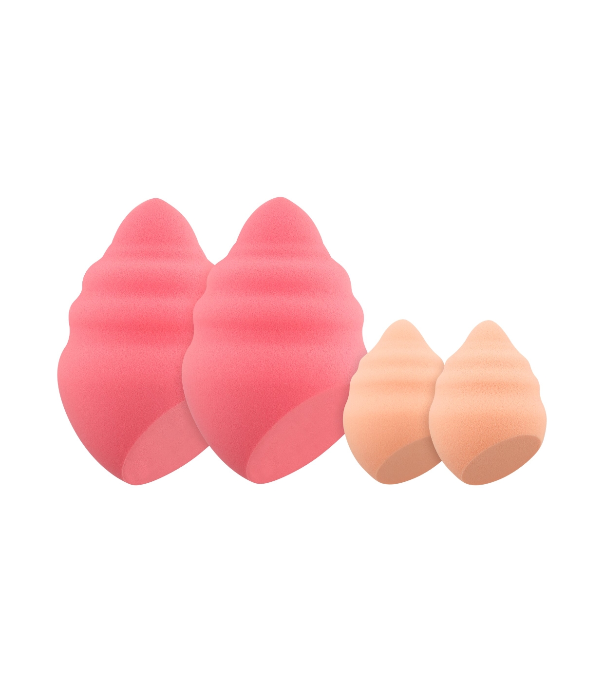 Este adorable set incluye 4 esponjas de maquillaje en diferentes tamaños y formas, perfectas para aplicar base, corrector y otros productos líquidos o en crema con un acabado uniforme y natural.