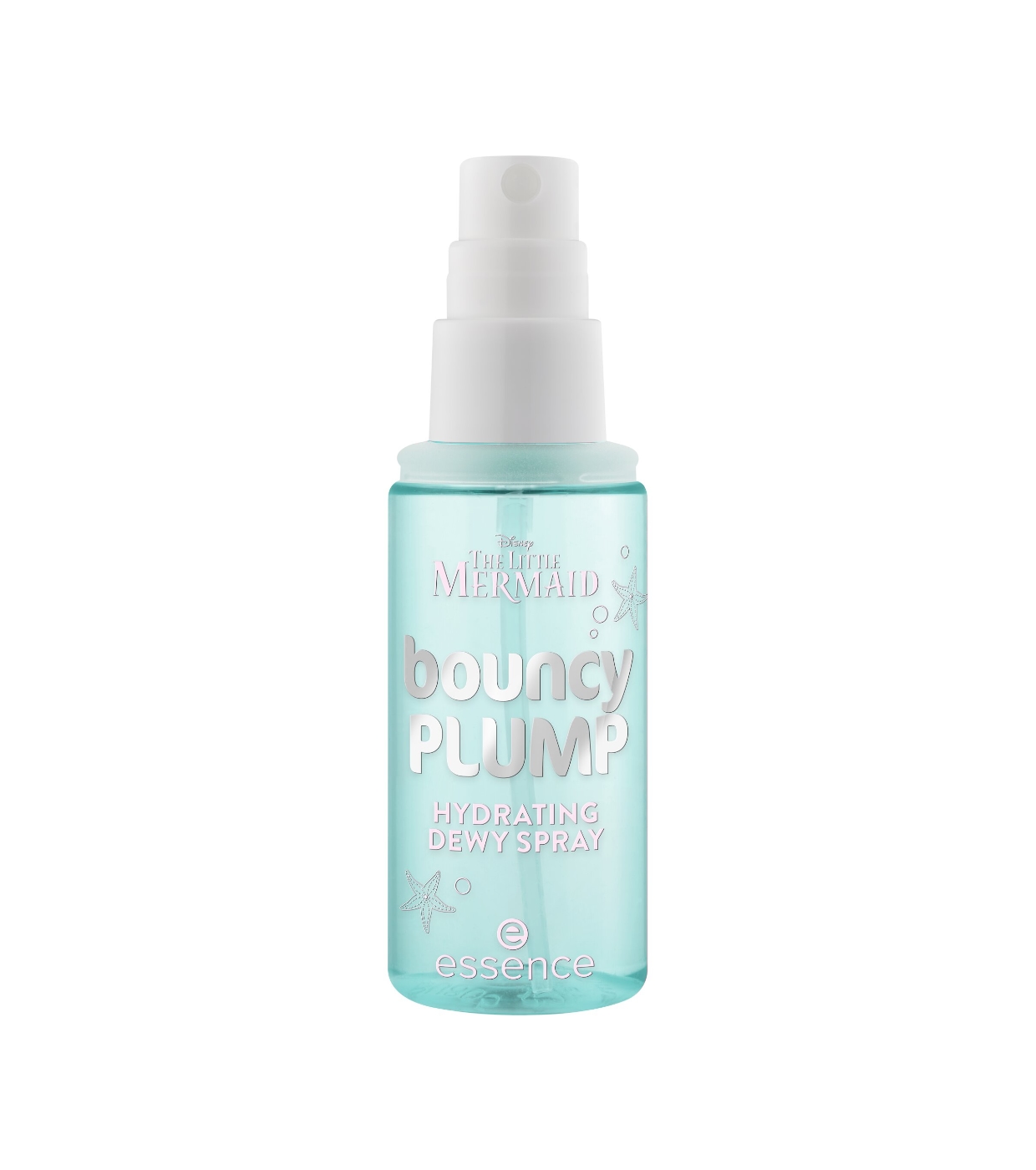 Refresca e hidrata tu piel con el spray fijador Bouncy Plump Hydrating de essence, inspirado en el mágico universo de The Little Mermaid.
