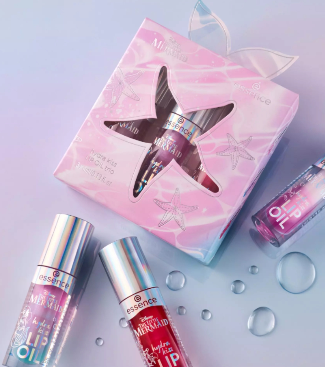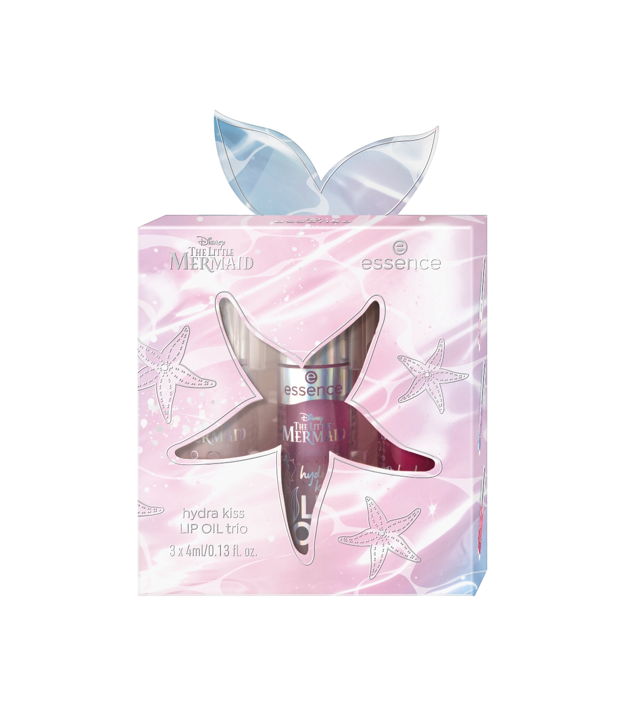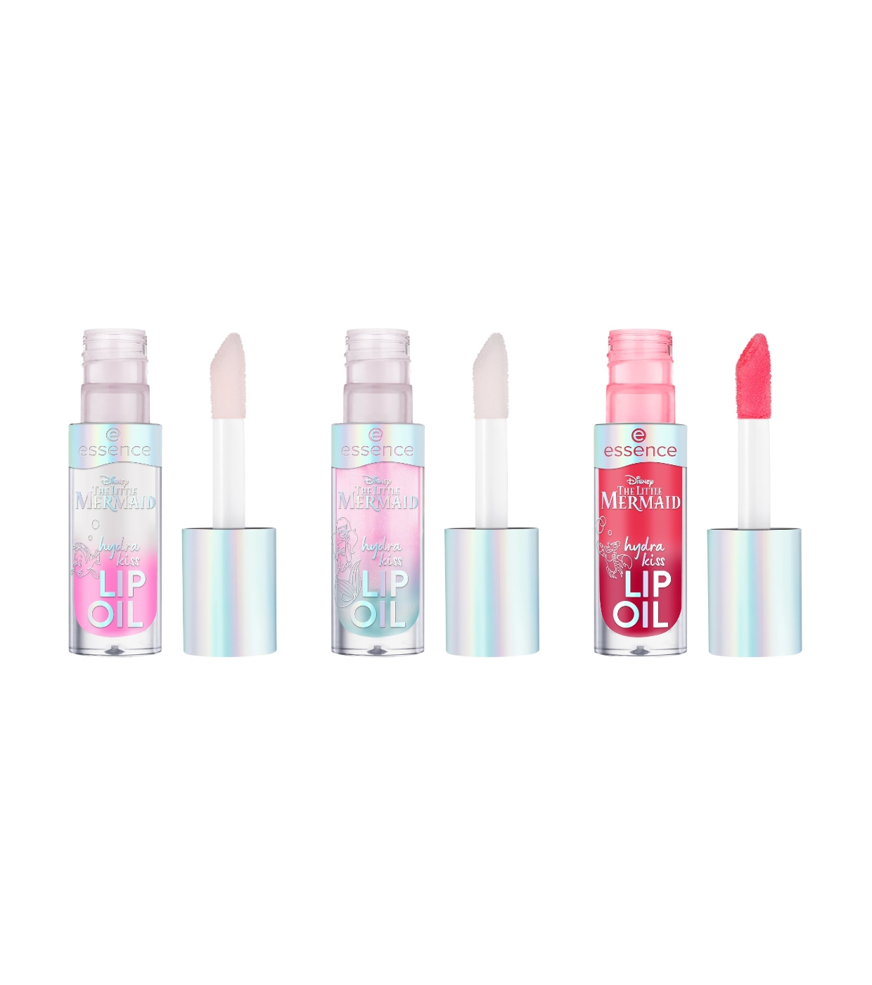 Disfruta de unos labios suaves y brillantes con el trío de aceites labiales Hydra Kiss de essence, inspirado en el encantador universo de The Little Mermaid.