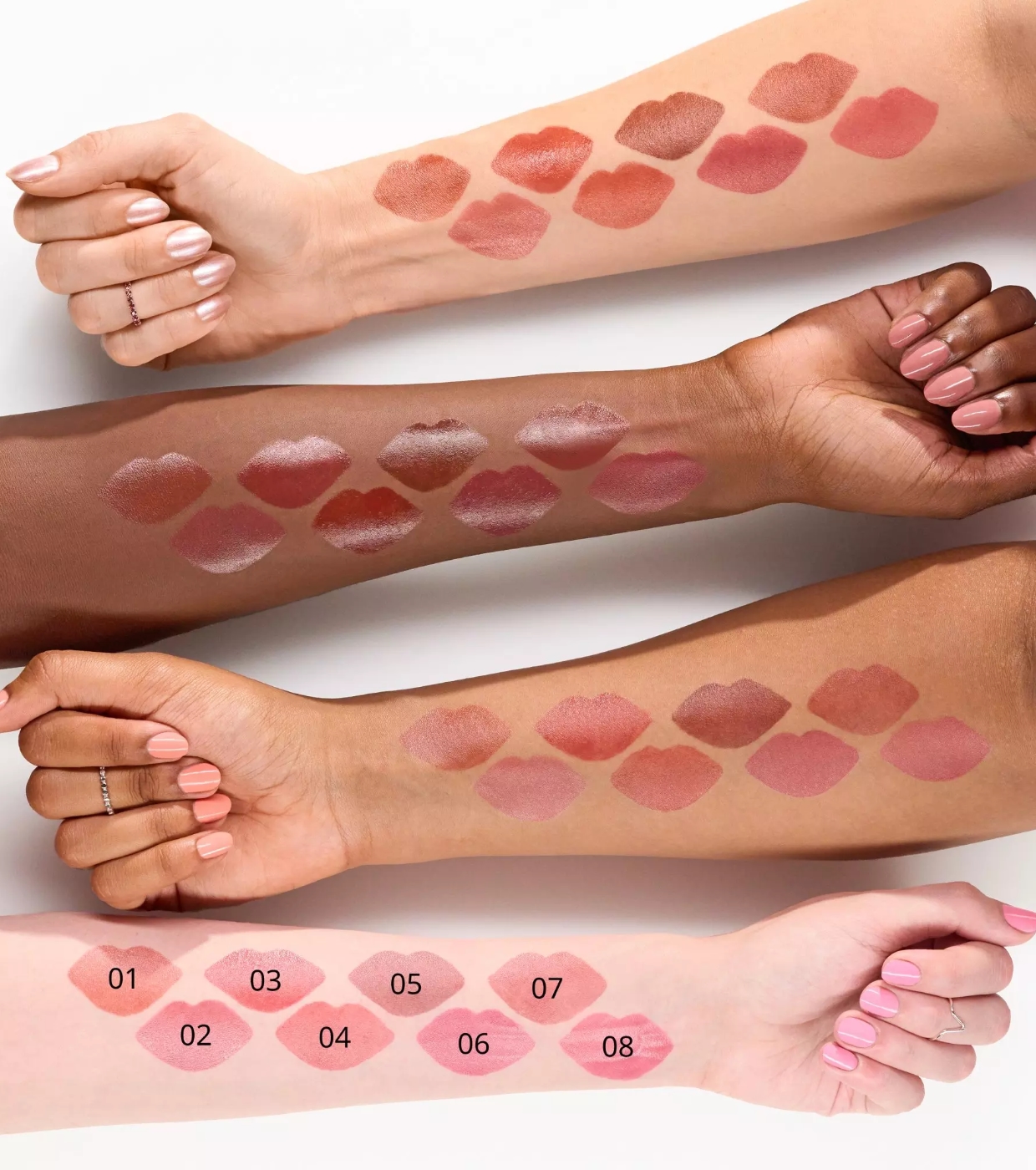 Su fórmula ligera y fluida aporta un tono nude suave que realza la forma natural de los labios, dejando un brillo delicado y favorecedor.