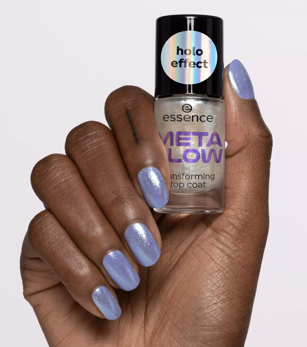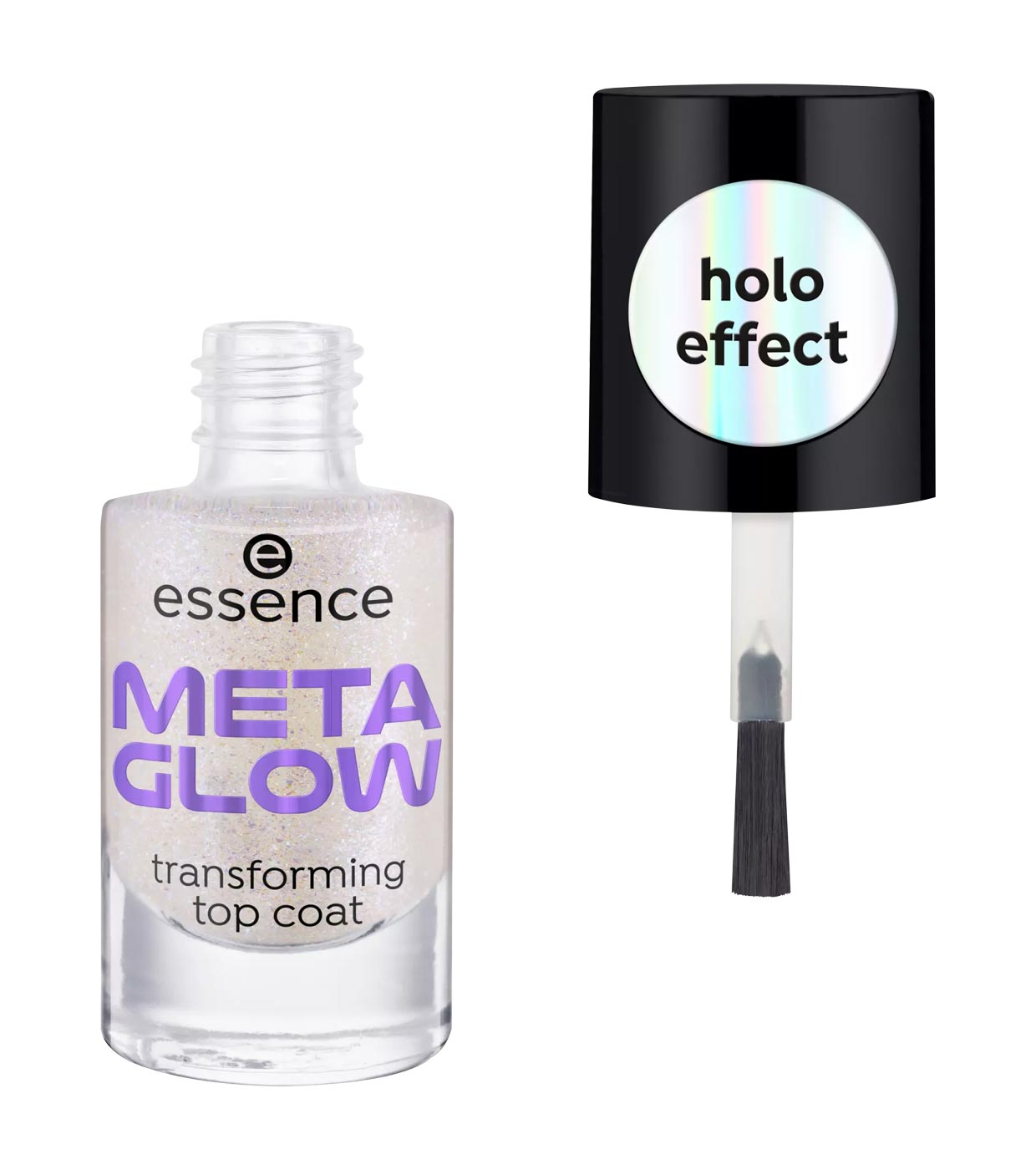 ¿Estás buscando un top coat que convierta tus uñas en una obra de arte espectacular? ¡Entonces el top coat transformador Meta Glow de essence es tu complice!