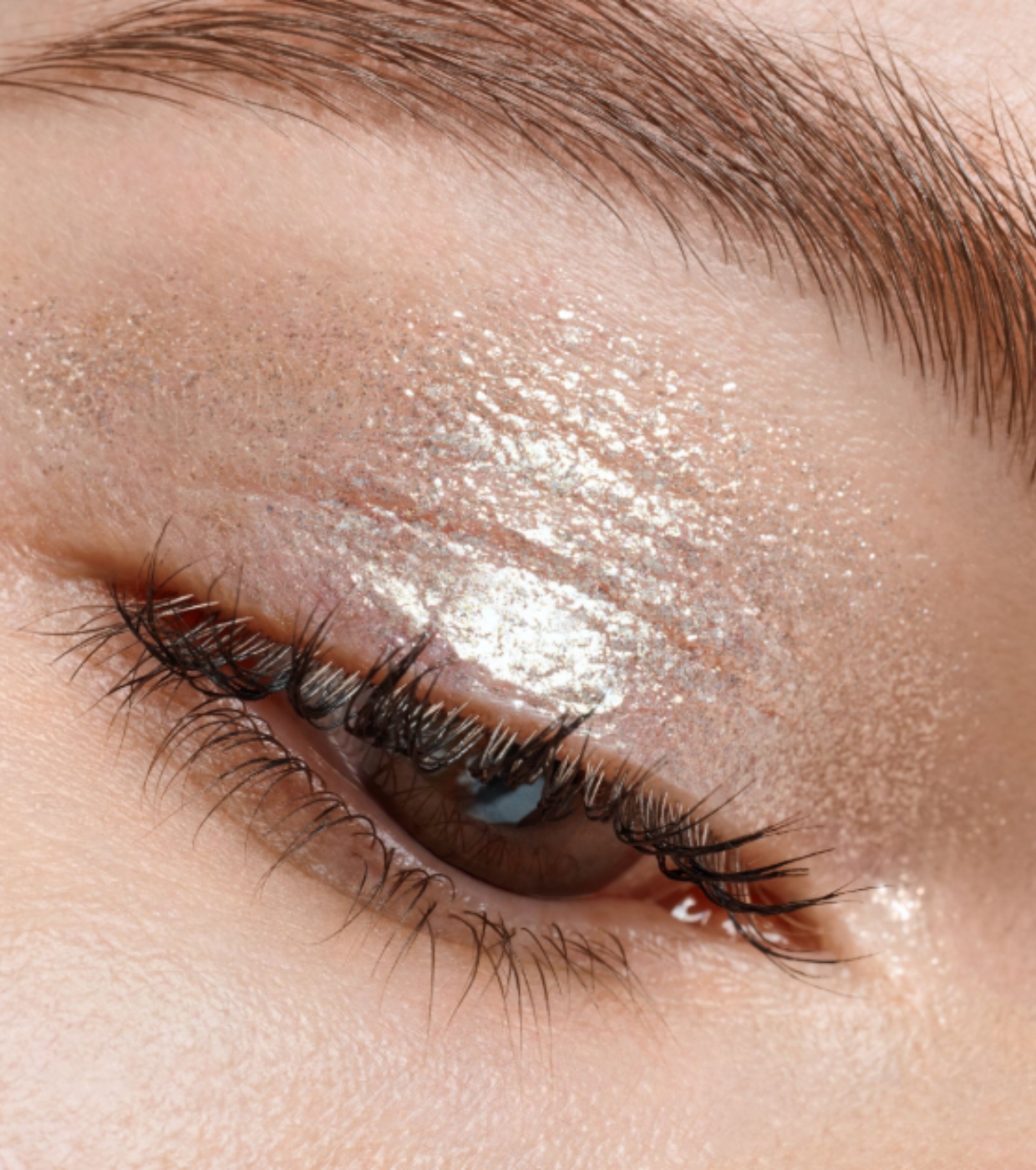 Ya sea solo o sobre tu sombra de ojos favorita, este topper añade partículas brillantes de color champán para un efecto radiante de larga duración.