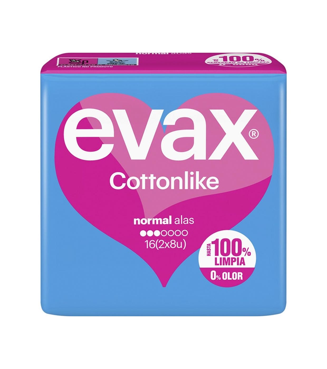 Pack de 16 unidades de compresas normal con alas Cottonlike de Evax.