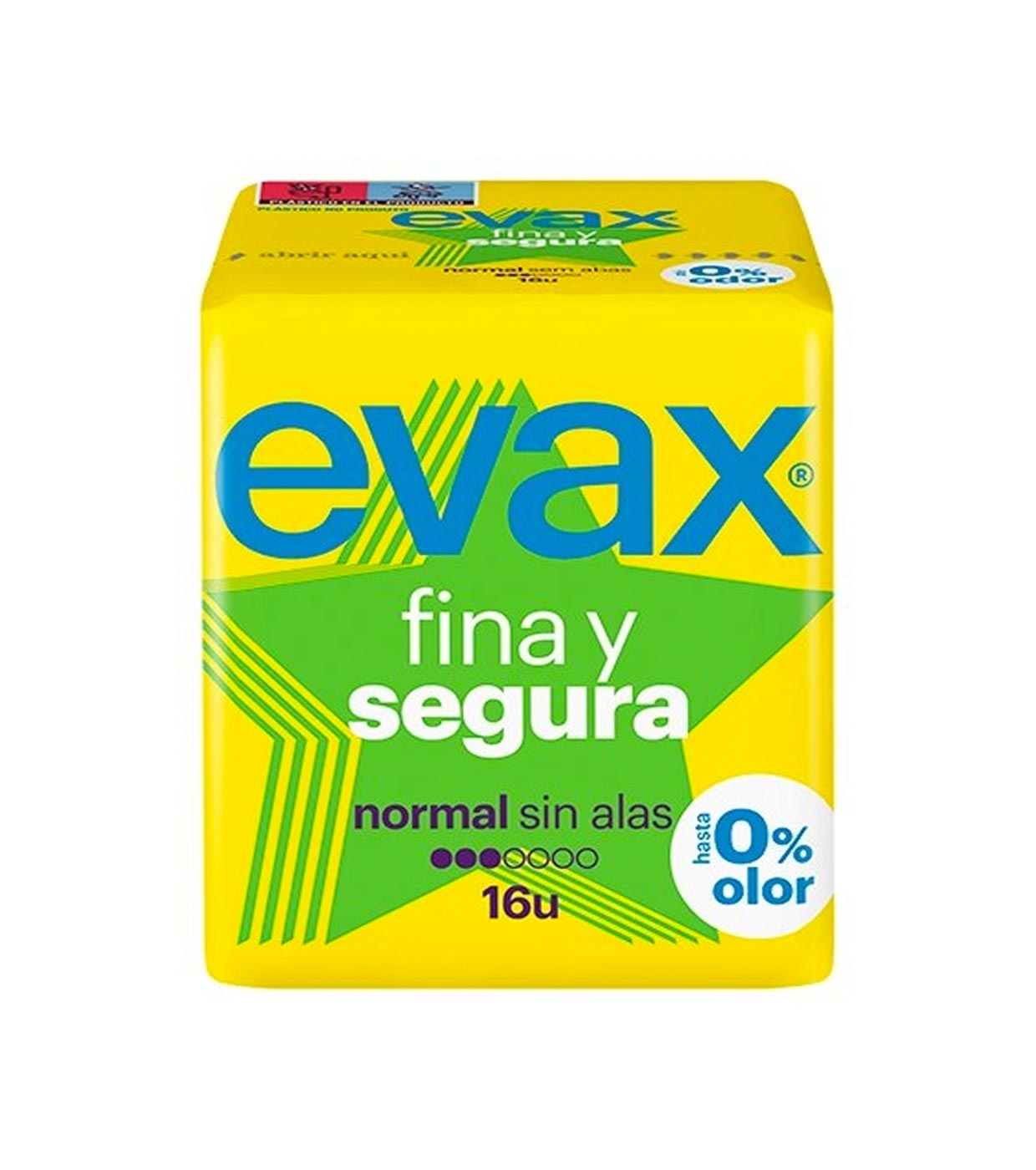 Pack de 16 unidades de compresas normal sin alas Fina y Segura de Evax.