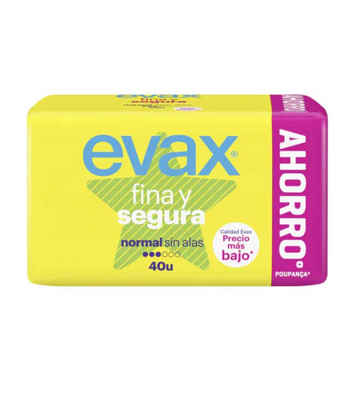 Pack de 40 unidades de compresas normal sin alas Fina y Segura de Evax.