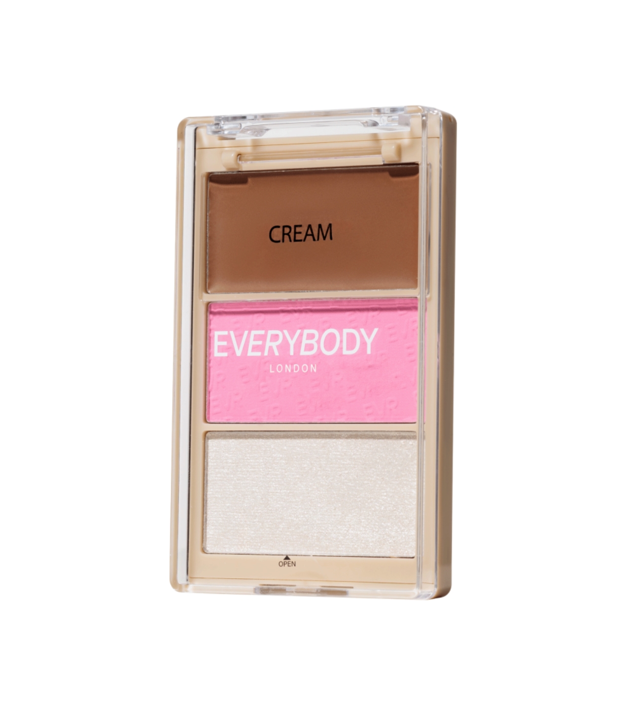 La paleta de rostro de Everybody London es la paleta 3 en 1 que reúne bronceador, colorete e iluminador, todo lo que necesitas para esculpir, dar color y resaltar tu rostro en un solo estuche compacto.