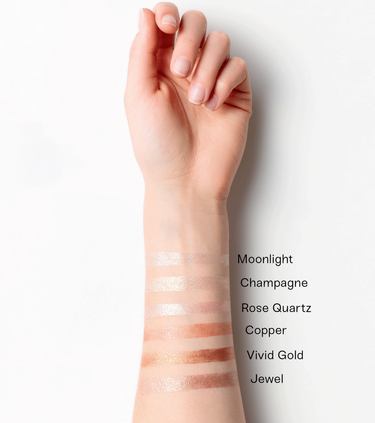 • Variedad de tonos shimmer para looks naturales, glowy o más intensos.