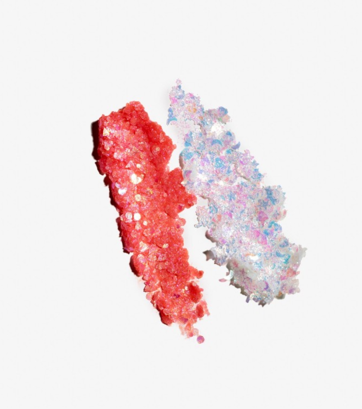 Creado en colaboración con Julia Żugaj, este glitter contiene partículas decorativas en forma de círculos y triángulos, que reflejan la luz con un efecto multidimensional y moderno.