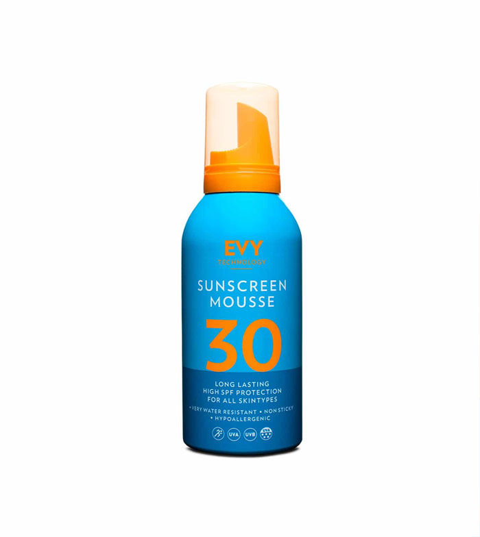 El protector solar Sunscreen Mousse SPF 30 de Evy Technology tiene una textura ultra-ligera en mousse para rostro y cuerpo, que brinda una protección solar extraordinariamente confiable de alto espectro contra los rayos UVA/UVB gracias a su tecnología médica patentada.