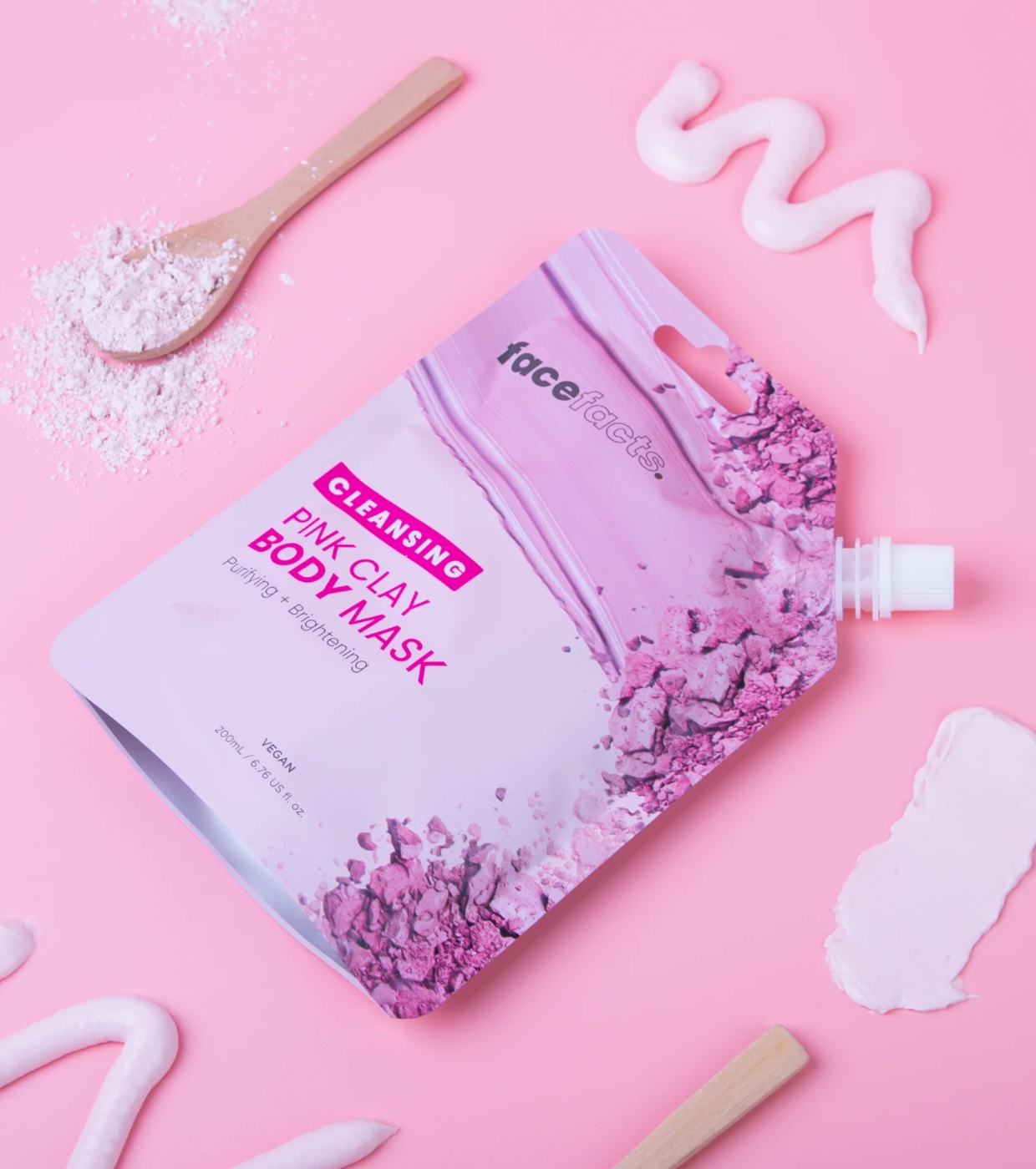 Purifica y da luz a tu cuerpo con nuestra mascarilla de arcilla rosa de Face Facts que dejará su piel limpia y suave.