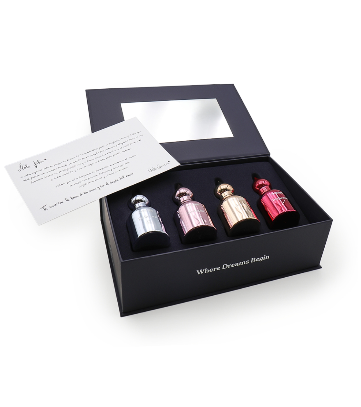 Cada fragancia representa una historia, un sueño y una emoción. Juntas, forman una experiencia olfativa inolvidable, perfecta para explorar distintos universos aromáticos o para regalar a quienes buscan perfumes con alma y personalidad.