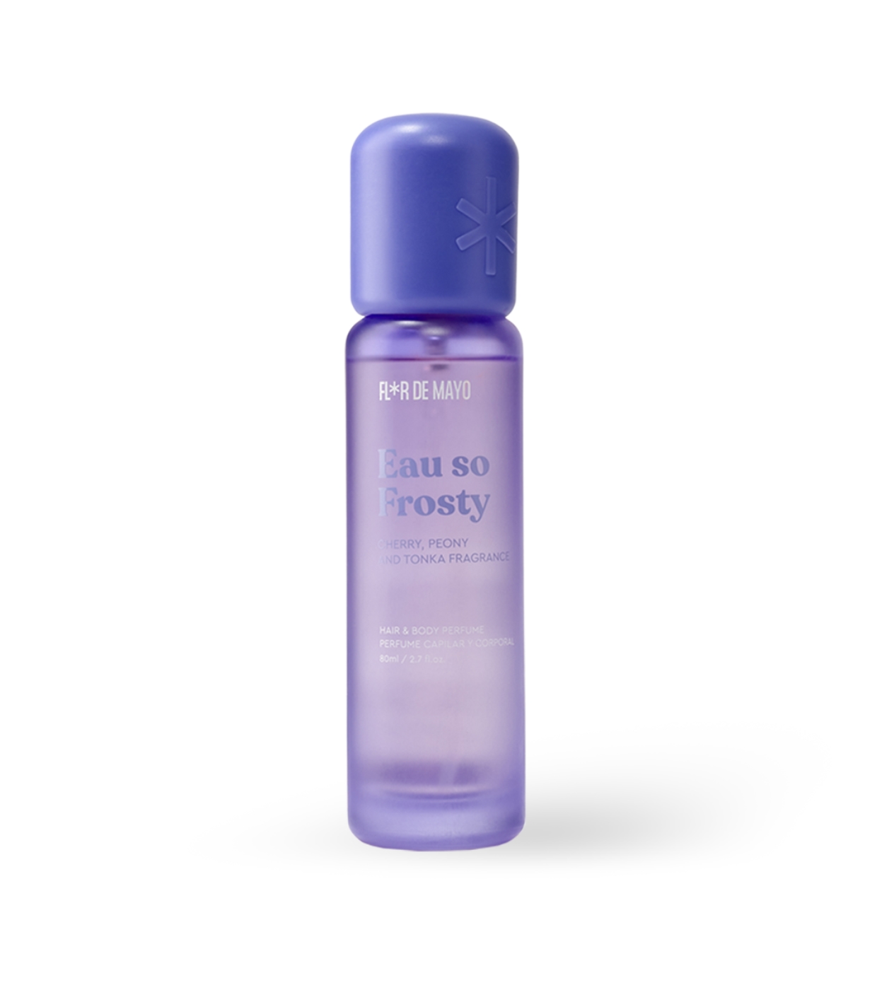 Refresca, perfuma y cuida tu piel y cabello con el elegante perfume capilar y corporal Frosty de Flor de Mayo, una fragancia serena y sofisticada con fondo almizclado que envuelve suavemente los sentidos.