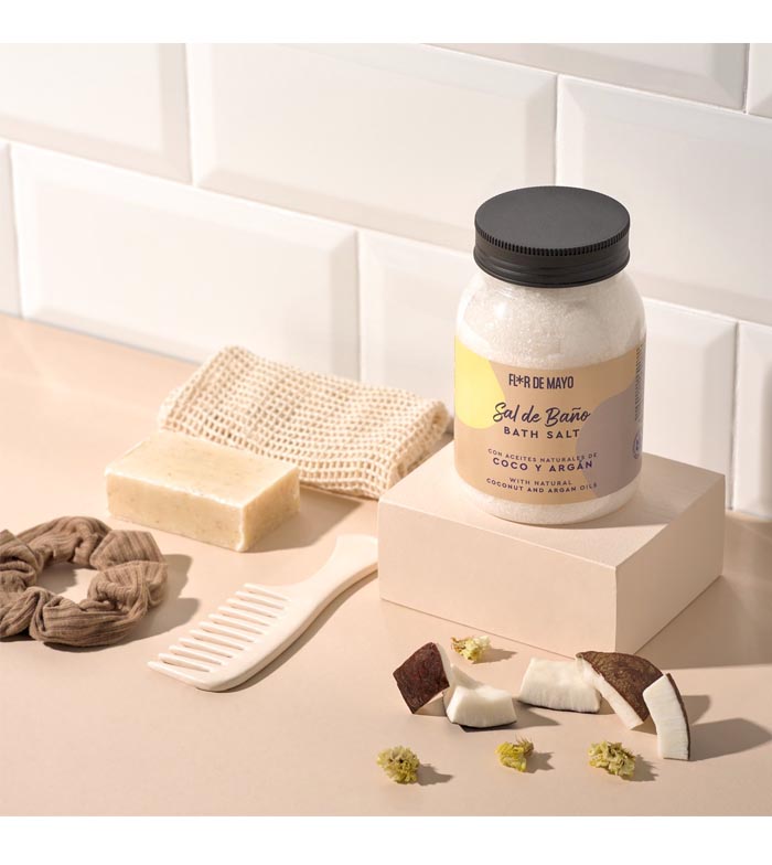 Una sal de baño que aumenta la densidad del agua, mejorando el índice de flotación. Por eso, un baño de agua con sales reduce el cansancio general y proporciona una gran sensación de relax.