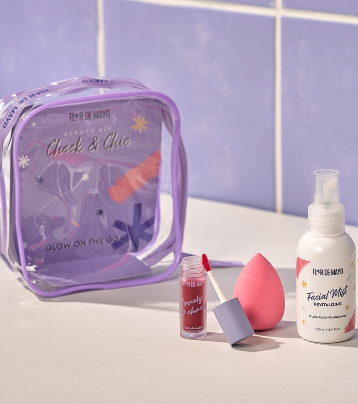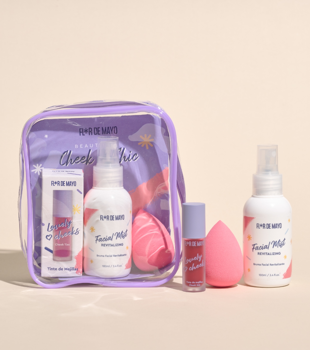 Dos imprescindibles para el cuidado facial se unen en un práctico formato de viaje, el set rostro radiante Cheek & Chic de Flor de Mayo.