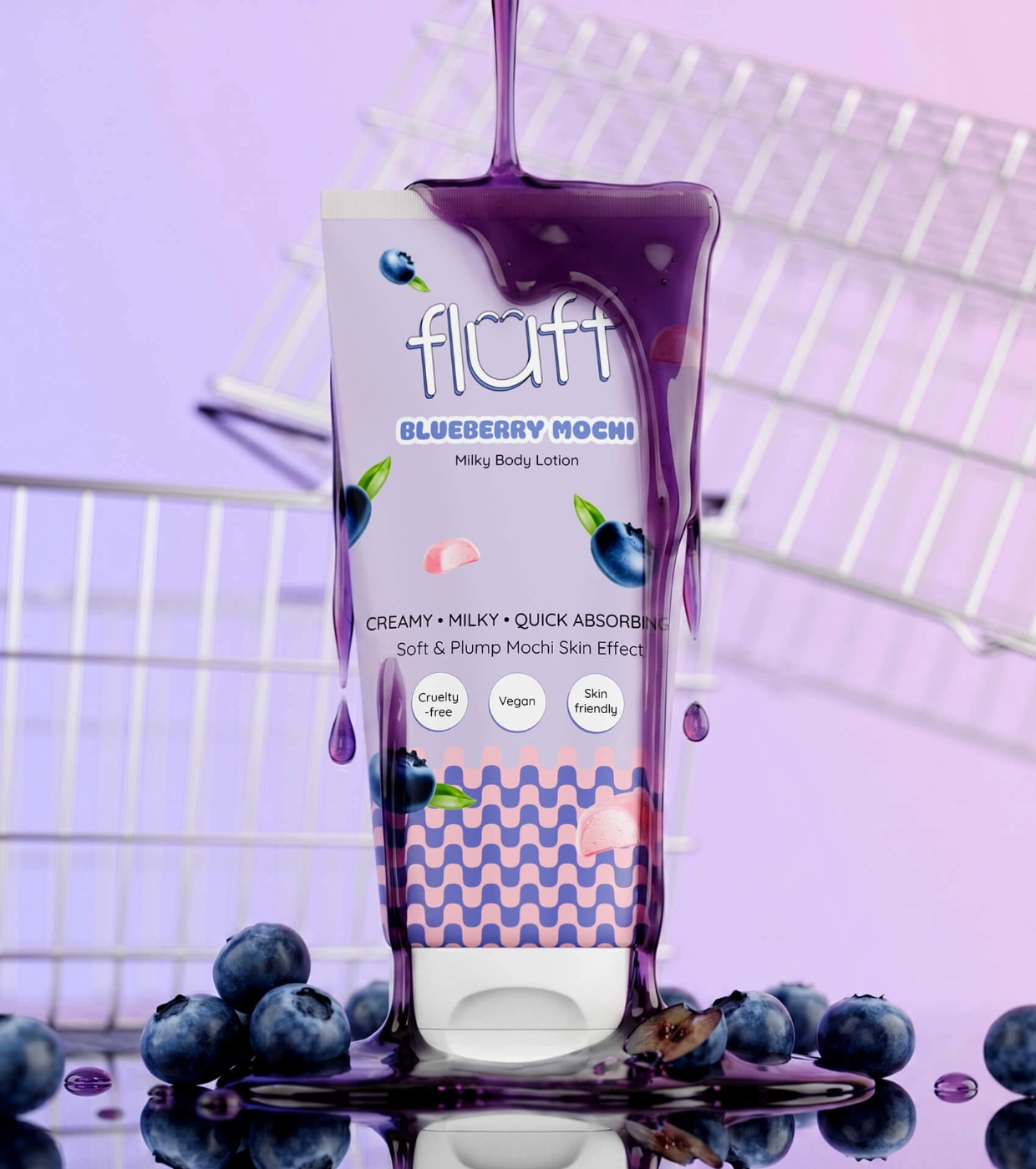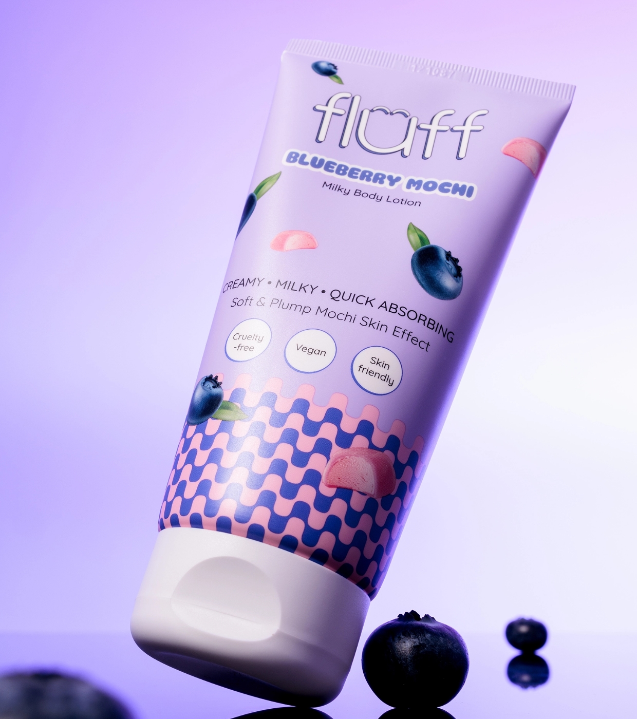 Disfruta de una piel suave, hidratada y con un aroma irresistible durante todo el día con el bálsamo corporal Blueberry Mochi de Fluff, el bálsamo corporal ligero que nutre y revitaliza la piel al instante.