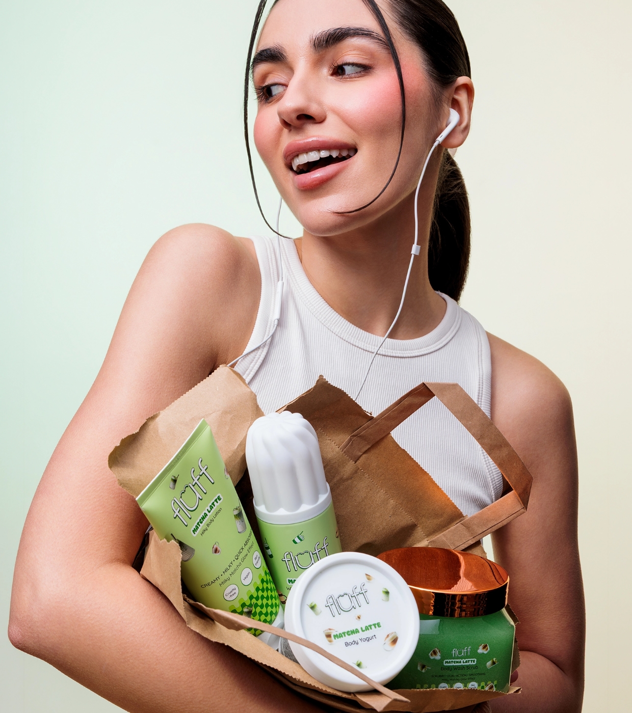 Aporta frescura e hidratación ligera a tu piel con el bálsamo corporal Matcha Latte de Fluff, el bálsamo corporal perfecto para el cuidado diario sin sensación pesada.