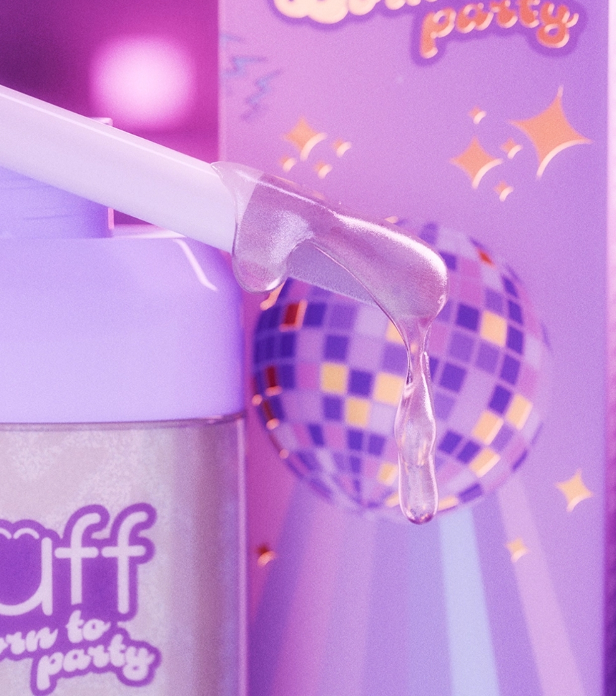 El brillo de labios con purpurina de Fluff es tu señal definitiva de que la fiesta está a punto de empezar.