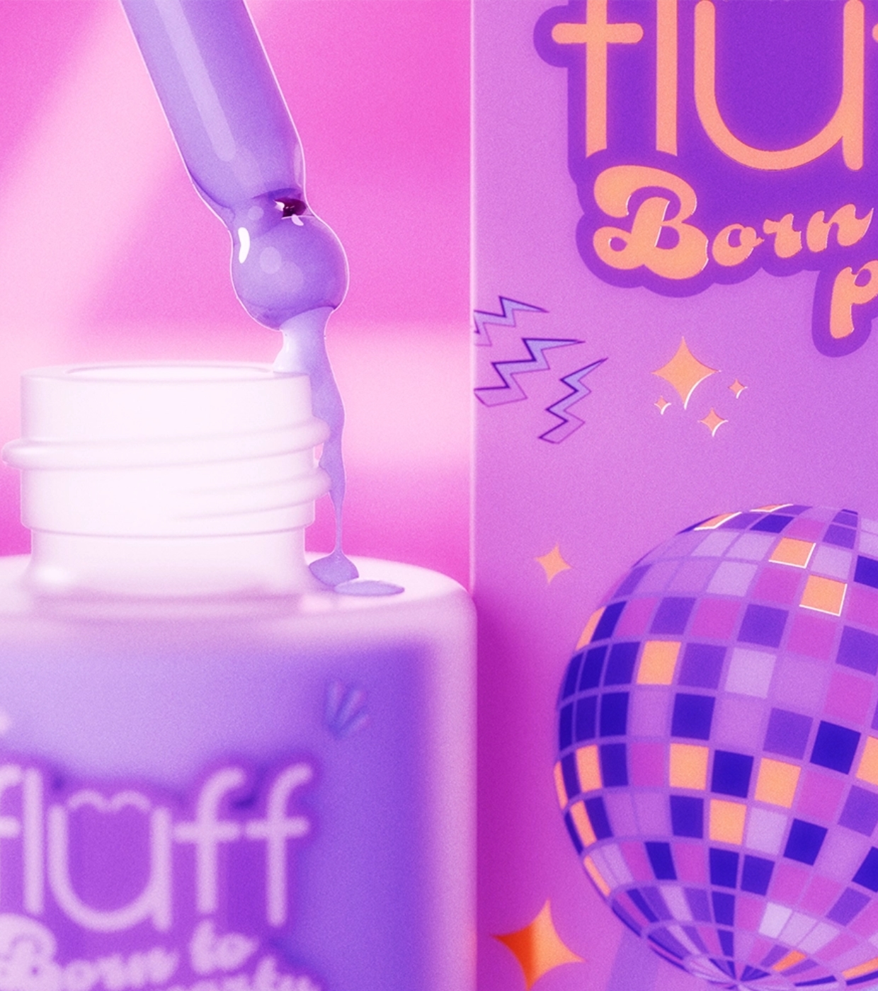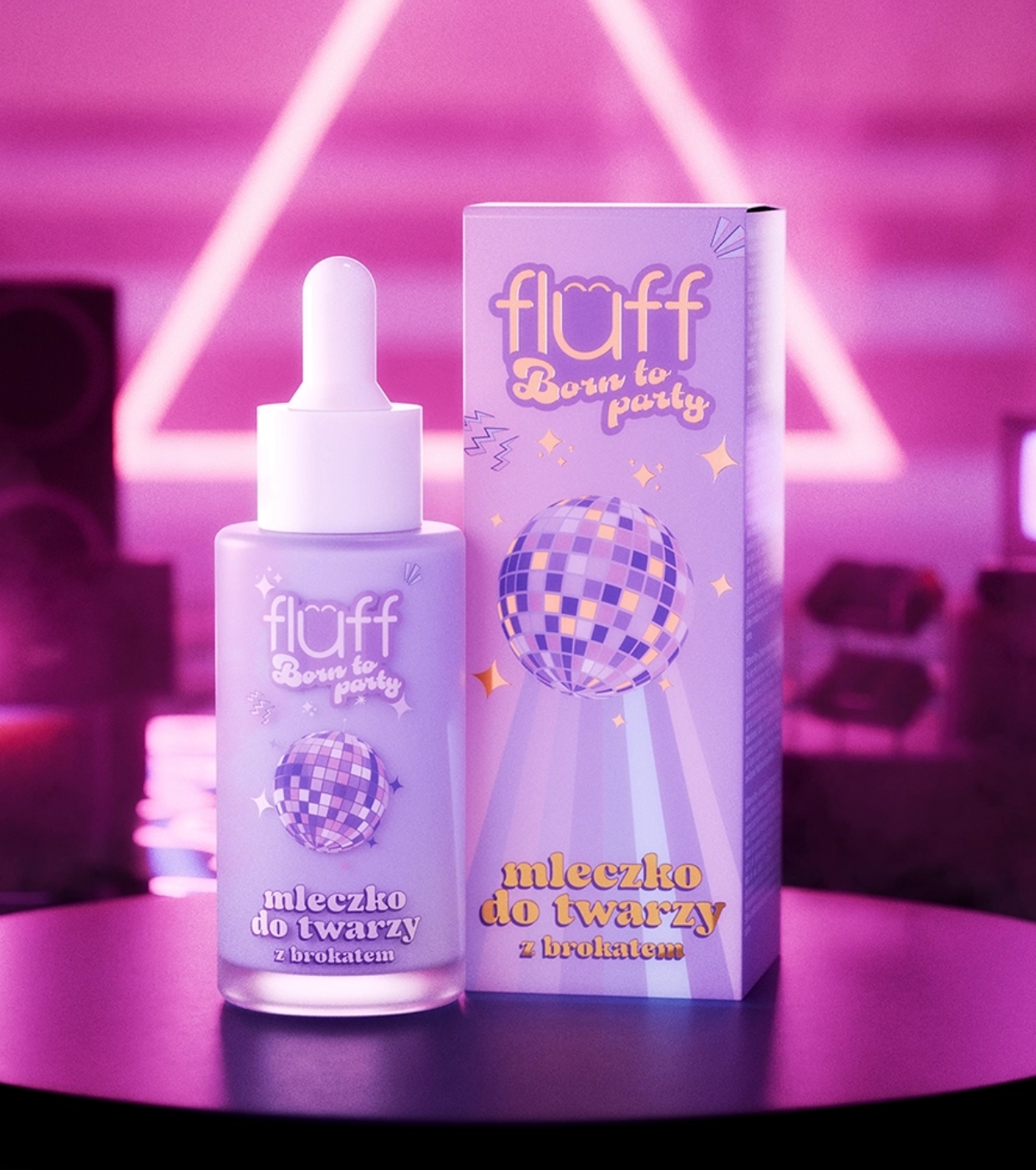 La leche facial con purpurina de Fluff es el primer paso para una piel luminosa, fresca y lista para brillar.