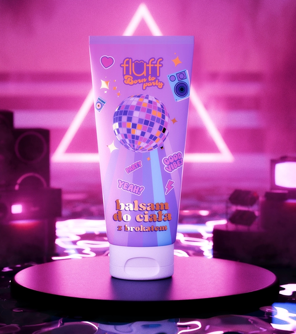 La Born To Party Loción corporal con purpurina de Fluff es el toque perfecto para conseguir una piel luminosa y festiva al instante.