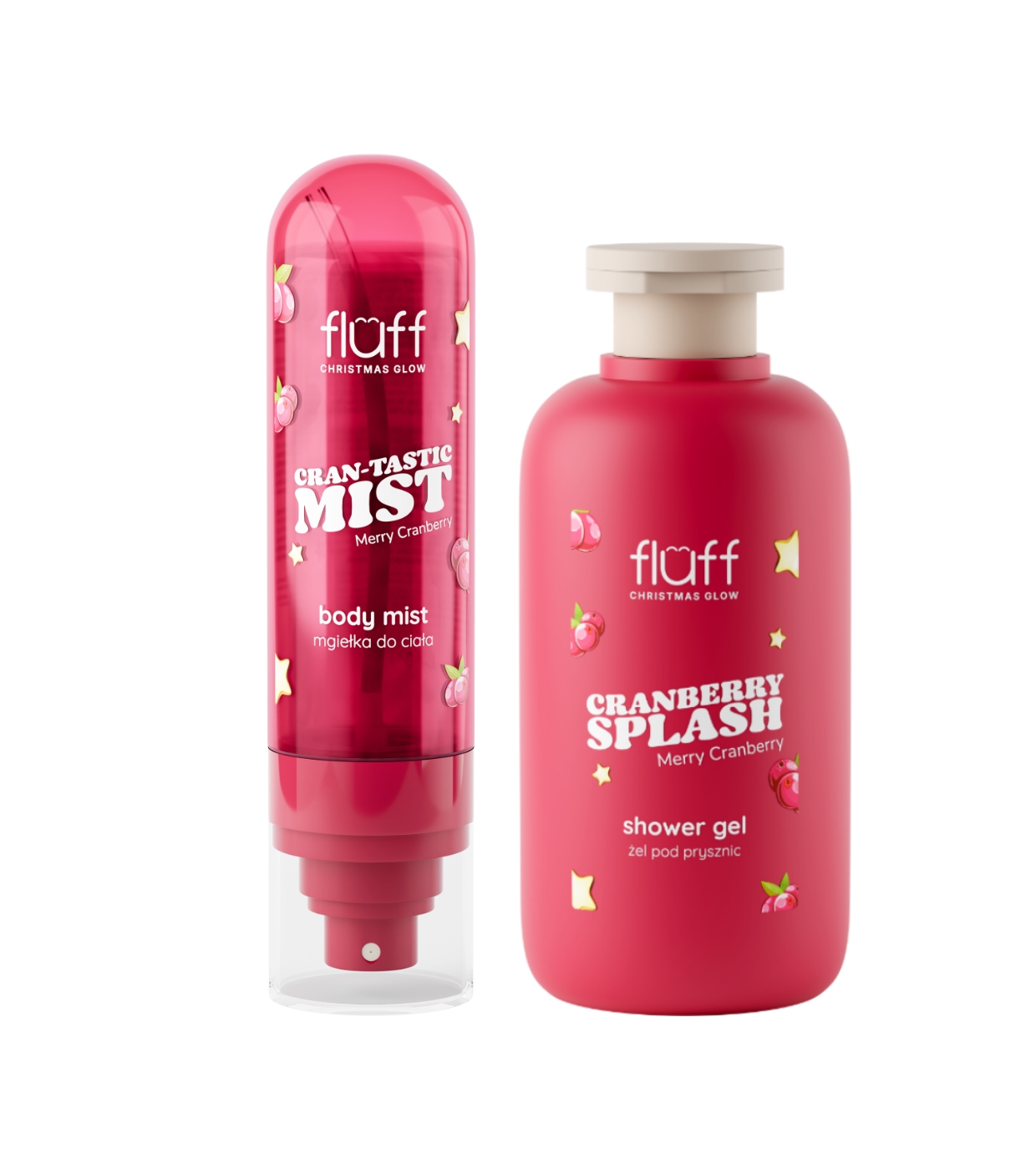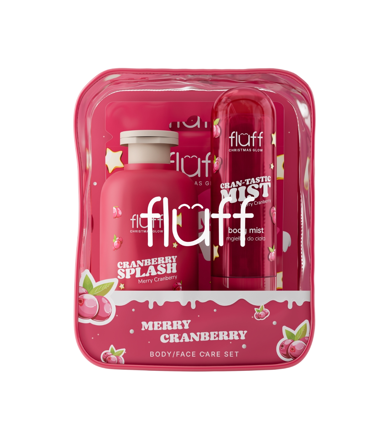 El set de cuidado corporal Merry Cranberry de Fluff transforma tu rutina diaria en un ritual festivo lleno de frescura y dulzura.