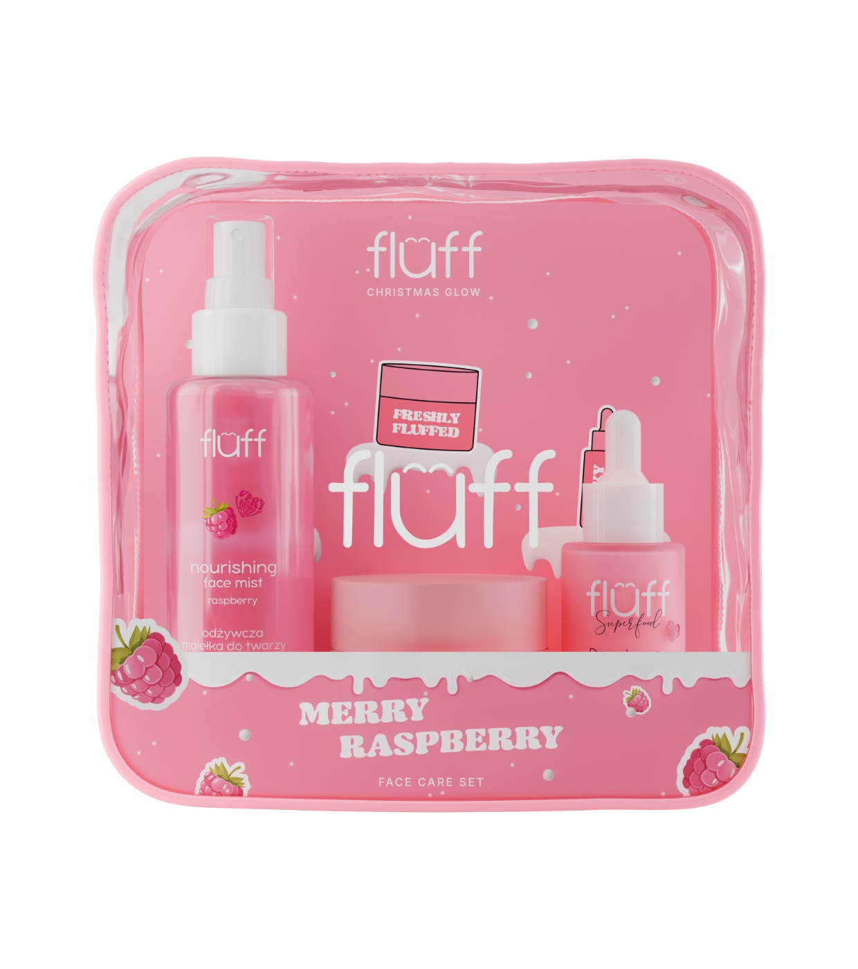 El set de cuidado corporal Merry Raspberry de Fluff es un imprescindible para quienes buscan un cuidado facial nutritivo, refrescante y lleno de energía frutal.