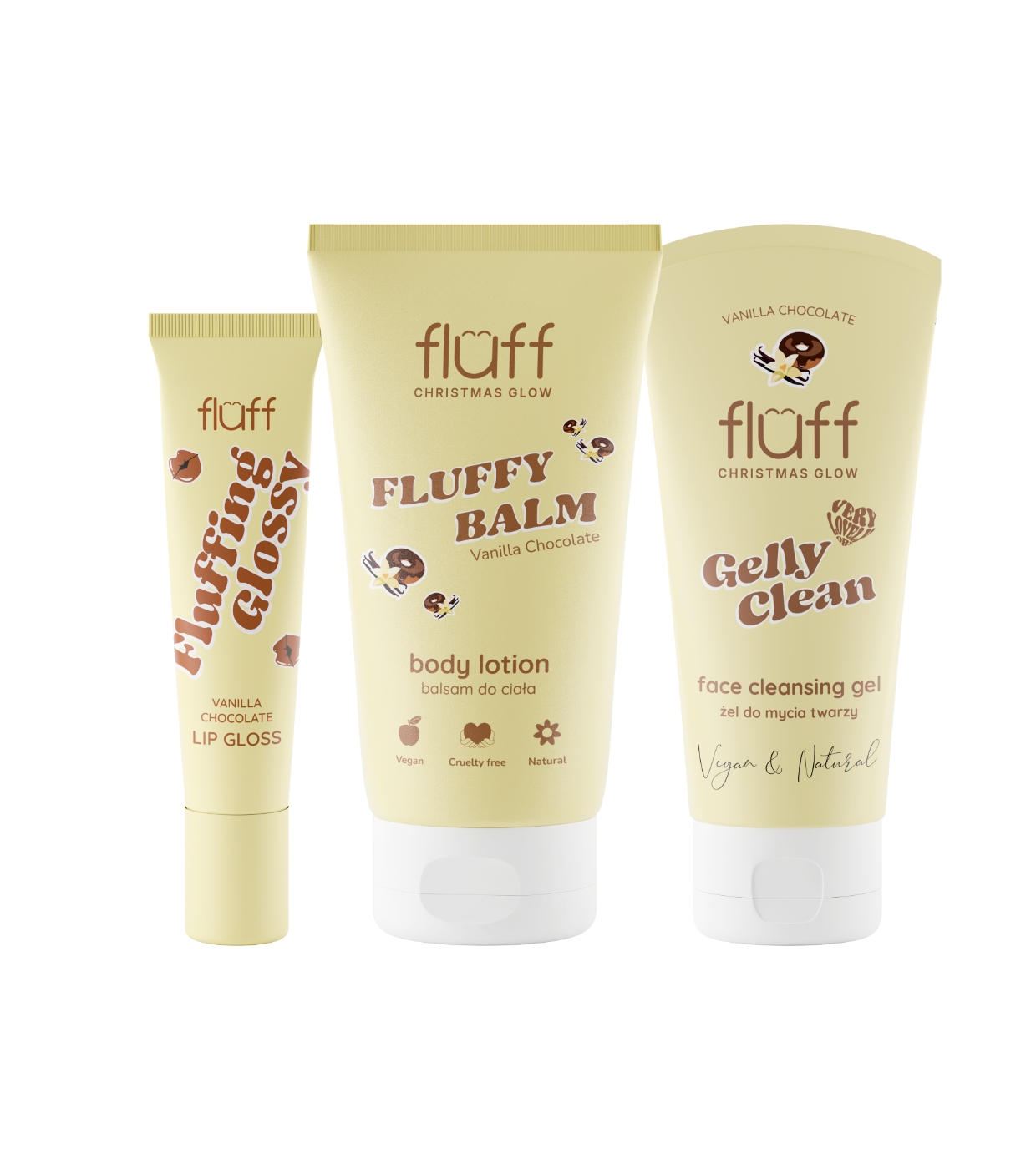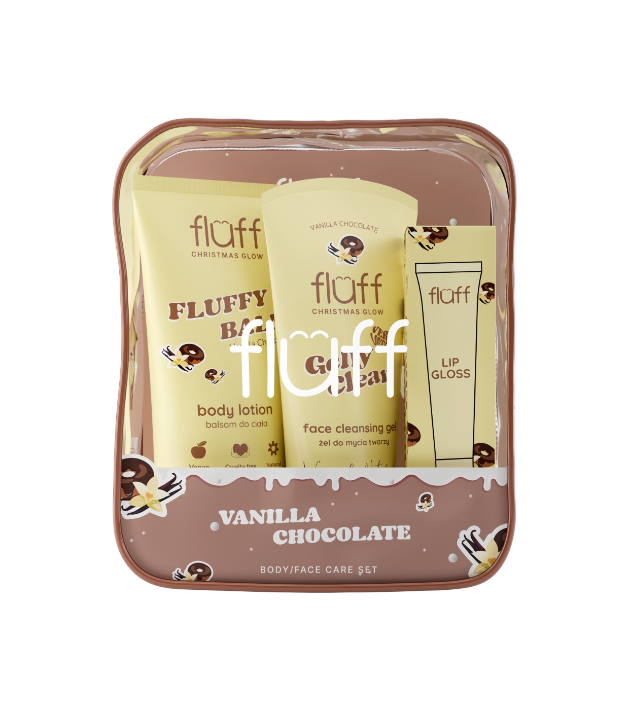 El set de cuidado corporal Vanilla Chocolate de Fluff combina cuidado corporal y facial con un aroma irresistible de vainilla y chocolate que convierte tu rutina en un momento de puro placer.