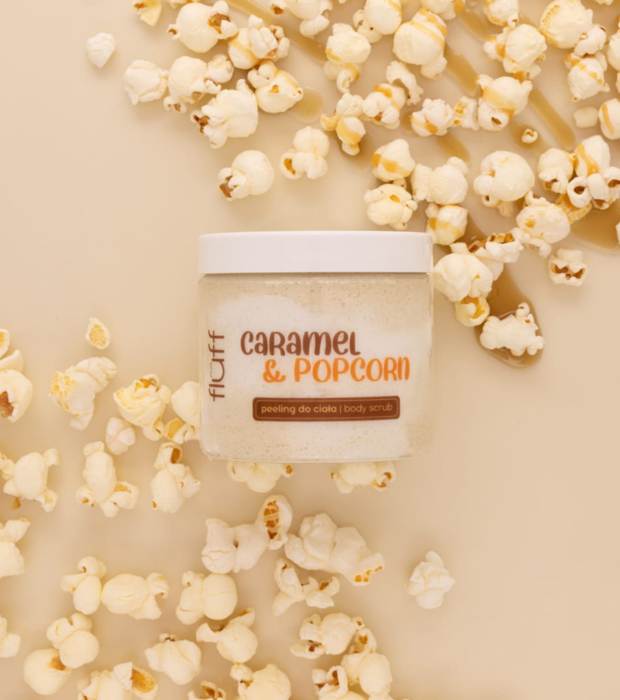 Si te gustan las combinacionessorprendentes el Exfoliante corporal Caramel & Popcorn de Fluff es para ti.