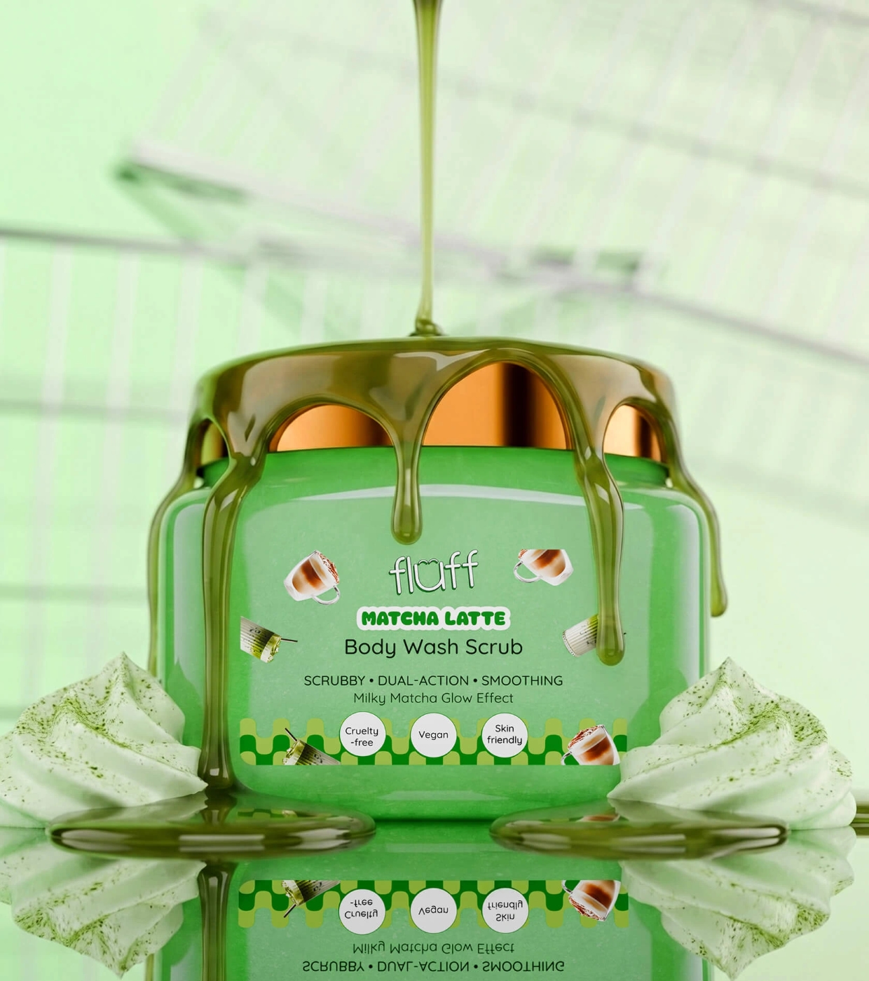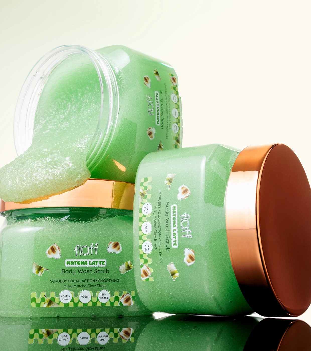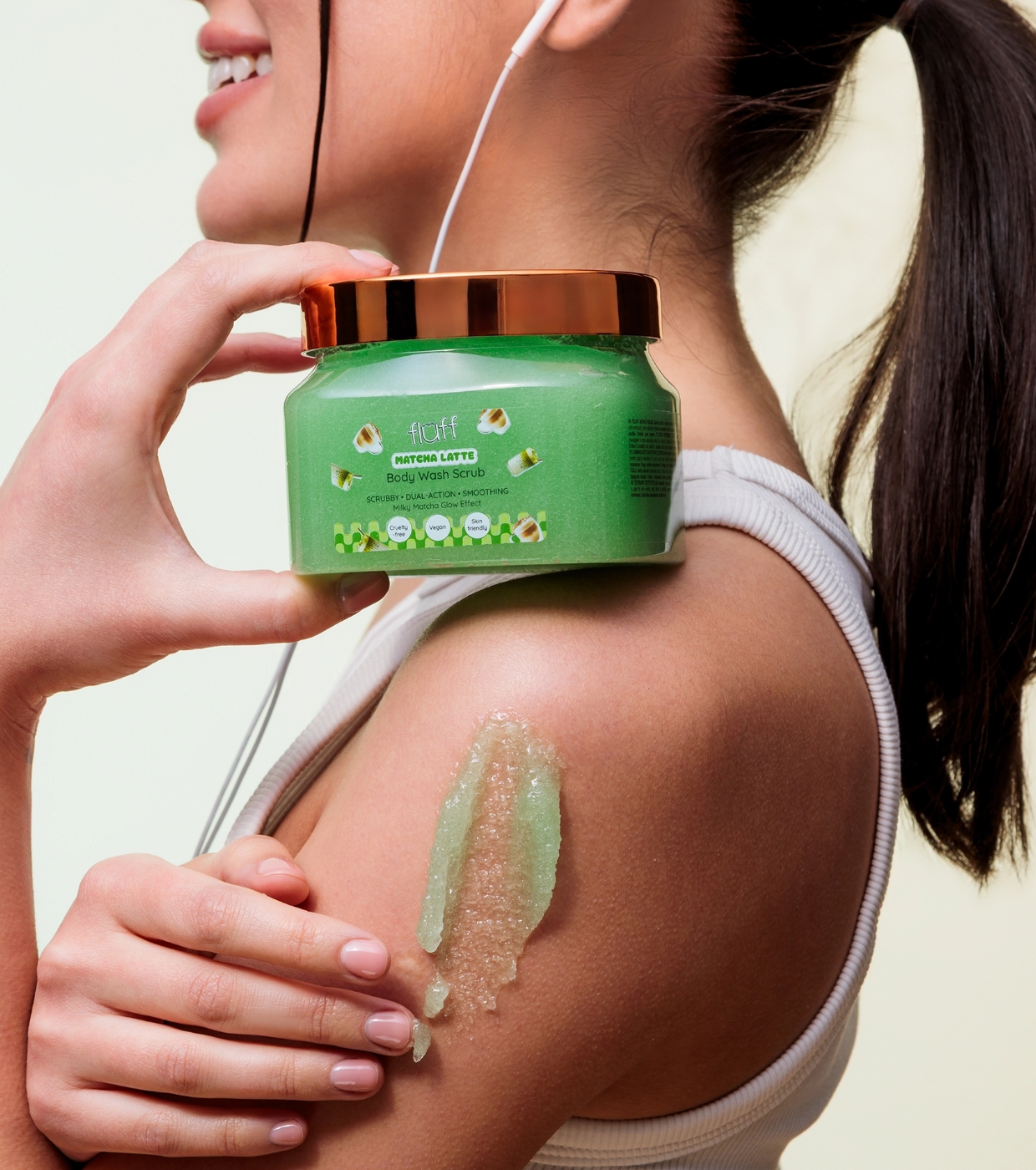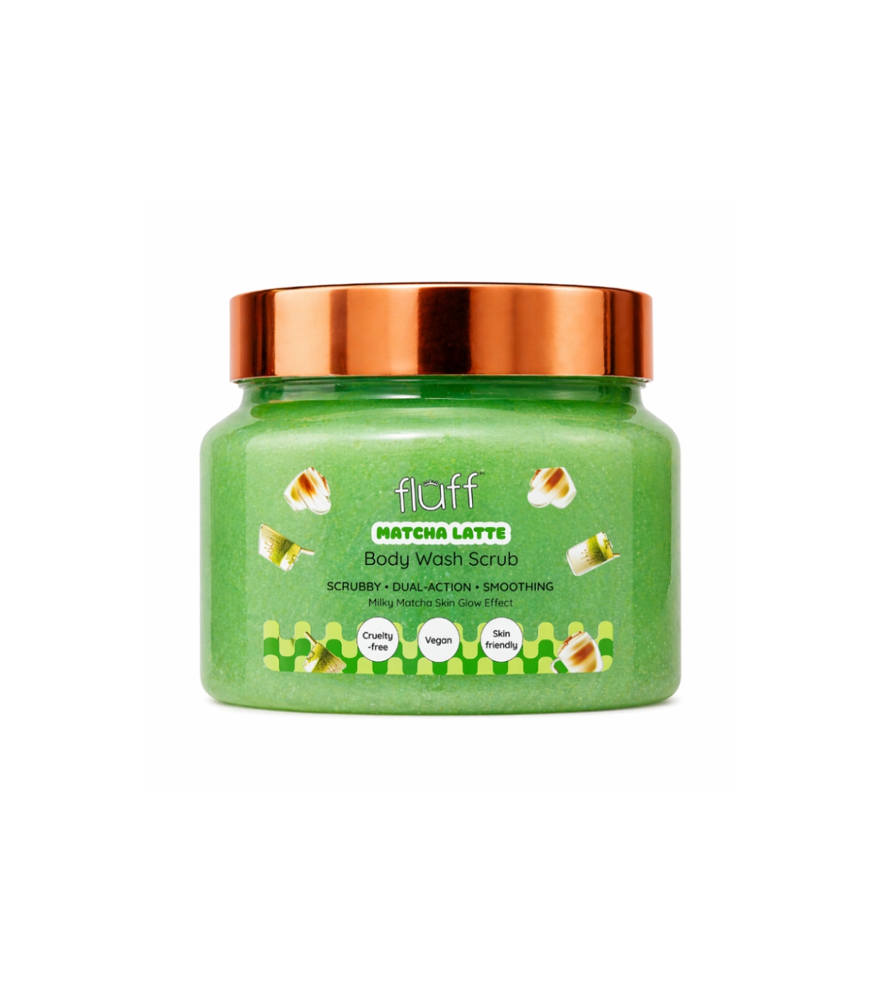 Disfruta de una piel suave, fresca y equilibrada con el exfoliante corporal Matcha Latte de Fluff, el peeling corporal que limpia, exfolia y cuida la piel sin resecar.