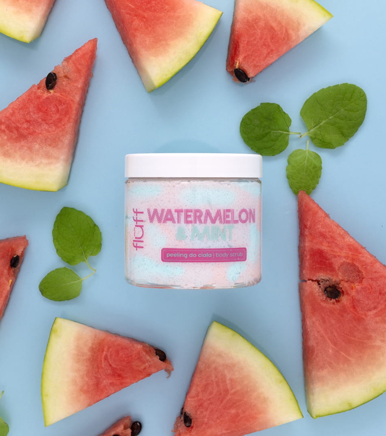 El exfoliante corporal Watermelon & Mint de Fluff elimina de manera efectiva las células muertas, dejando la piel suave y lisa.