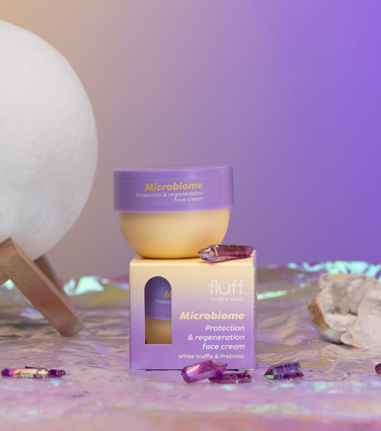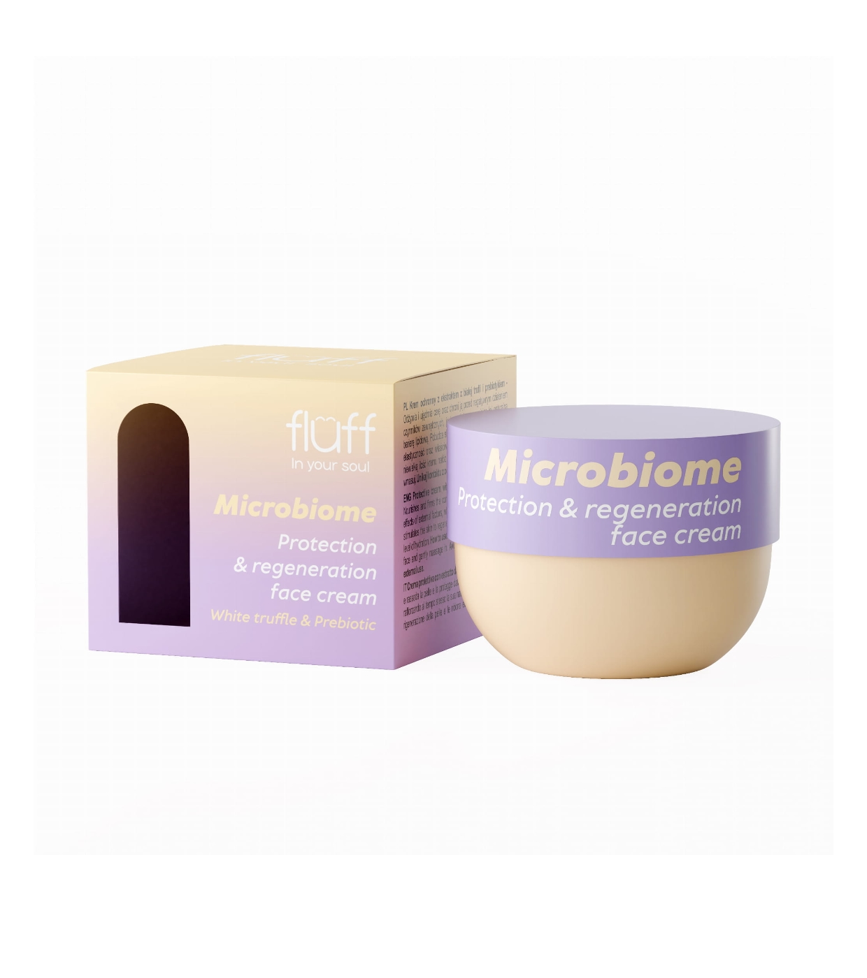 Esta crema facial con extracto de trufa blanca y prebióticos de Fluff nutre y reafirma la piel, protegiéndola de los efectos negativos de factores externos y fortaleciendo su barrera lipídica natural.