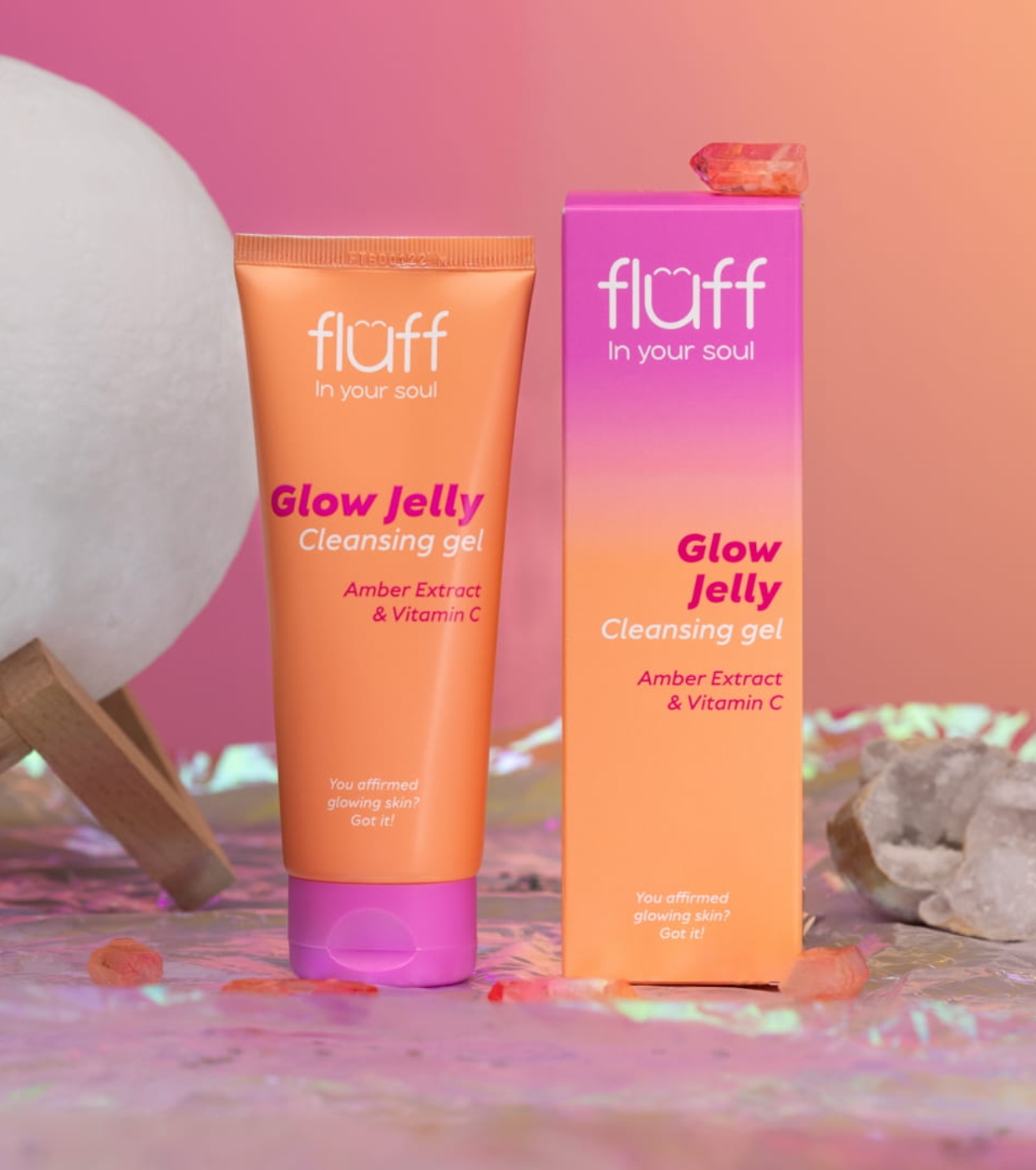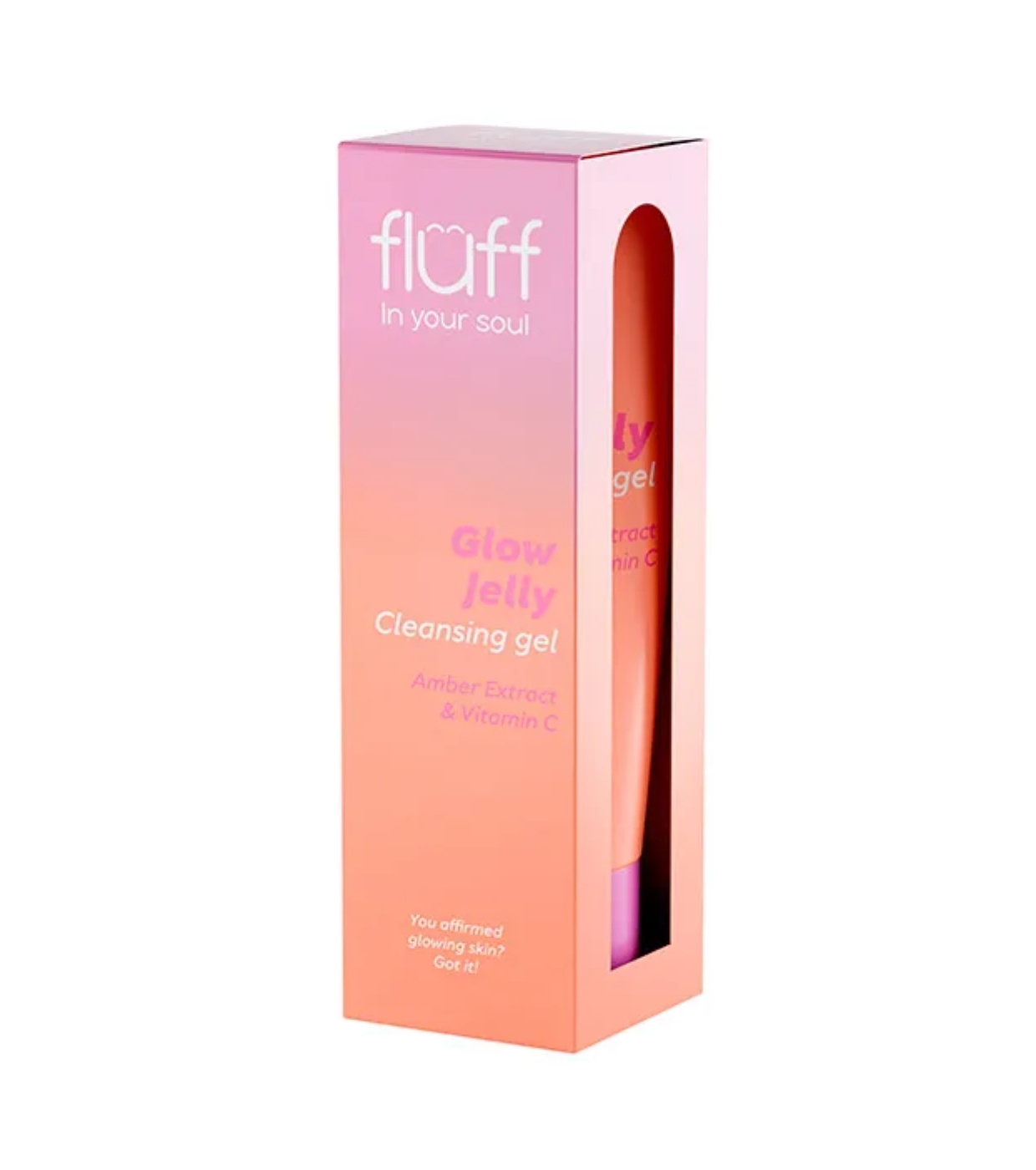 El gel limpiador facial vitamina C Glow Jelly de Fluff limpia suavemente la piel, iluminando los tonos apagados o grisáceos y aportando un brillo radiante.