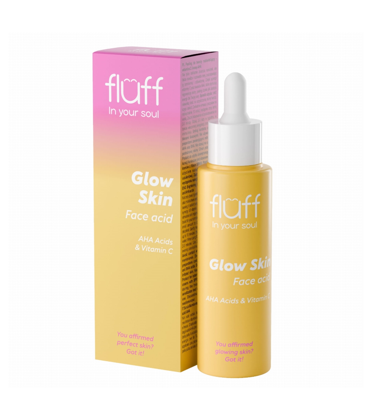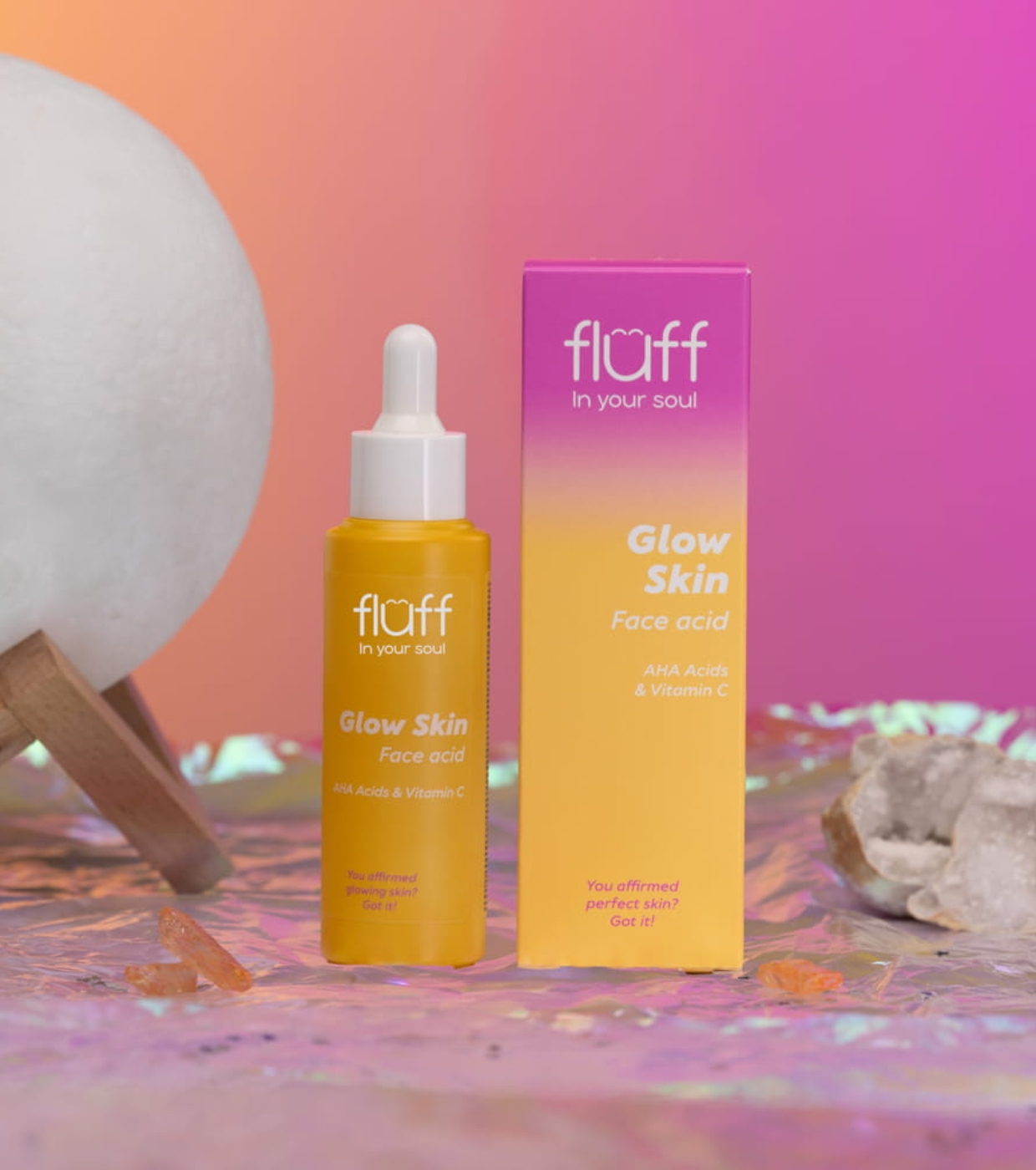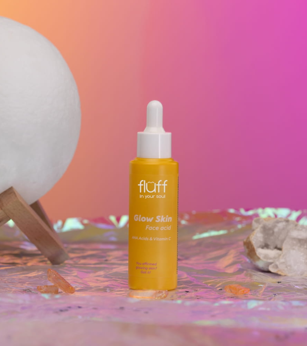 El Peeling facial Peeling facial iluminador con vitamina C Glow Skin de Fluff exfolia suavemente la epidermis mientras hidrata e ilumina el rostro, dejándolo radiante y fresco.