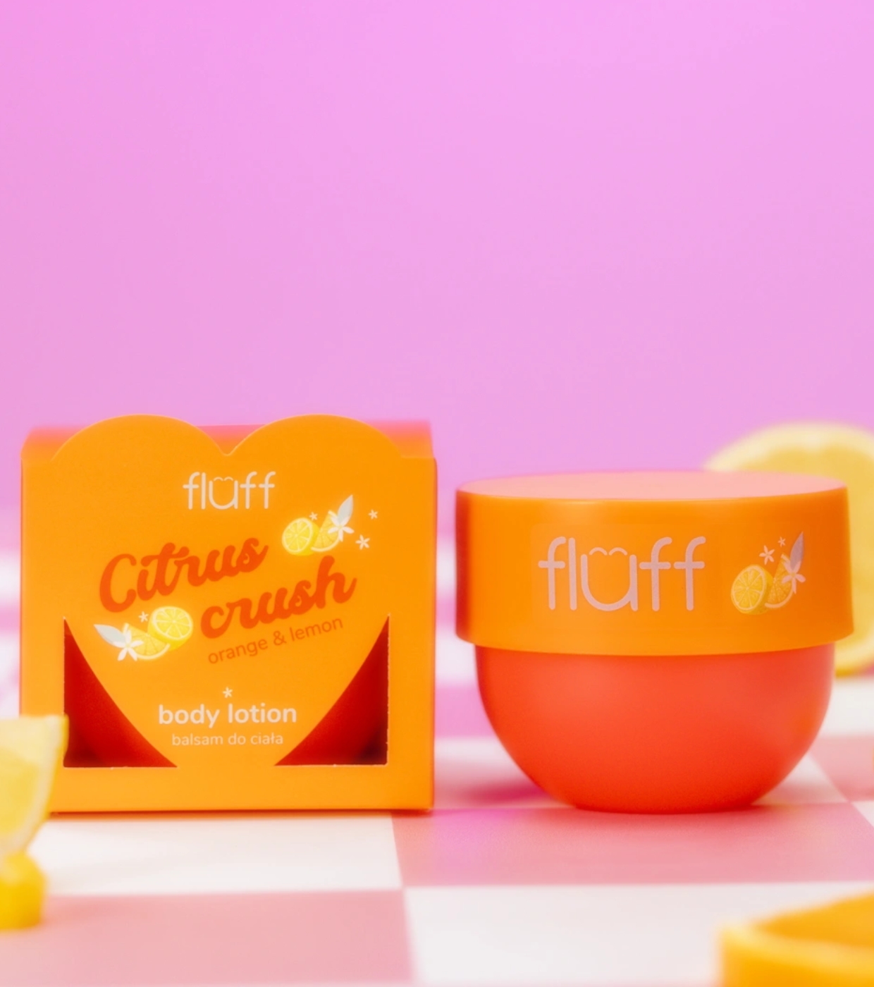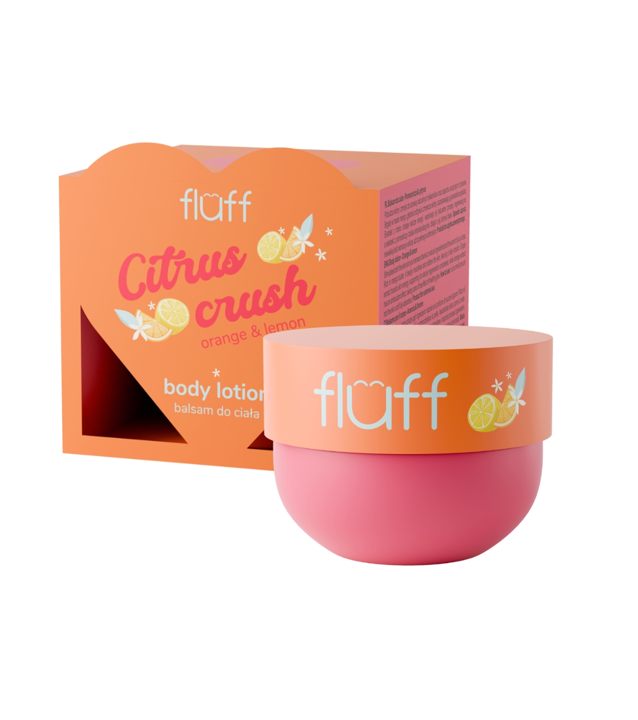 Dale a tu piel una dosis diaria de frescura cítrica y nutrición natural con la loción corporal Citrus Crush de Fluff.