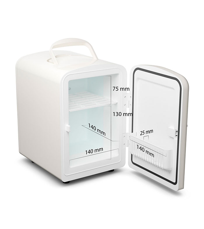 Una original mini nevera para cosméticos ideal para mantener refrigerados y en condiciones óptimas gran variedad de productos cosméticos (cremas y mascarillas faciales, ampollas faciales, sérums, contornos de ojos, maquillajes, cremas corporales, brumas y sprays faciales, rodillos y piedras, productos de belleza orgánicos con ingredientes naturales, etc.).
