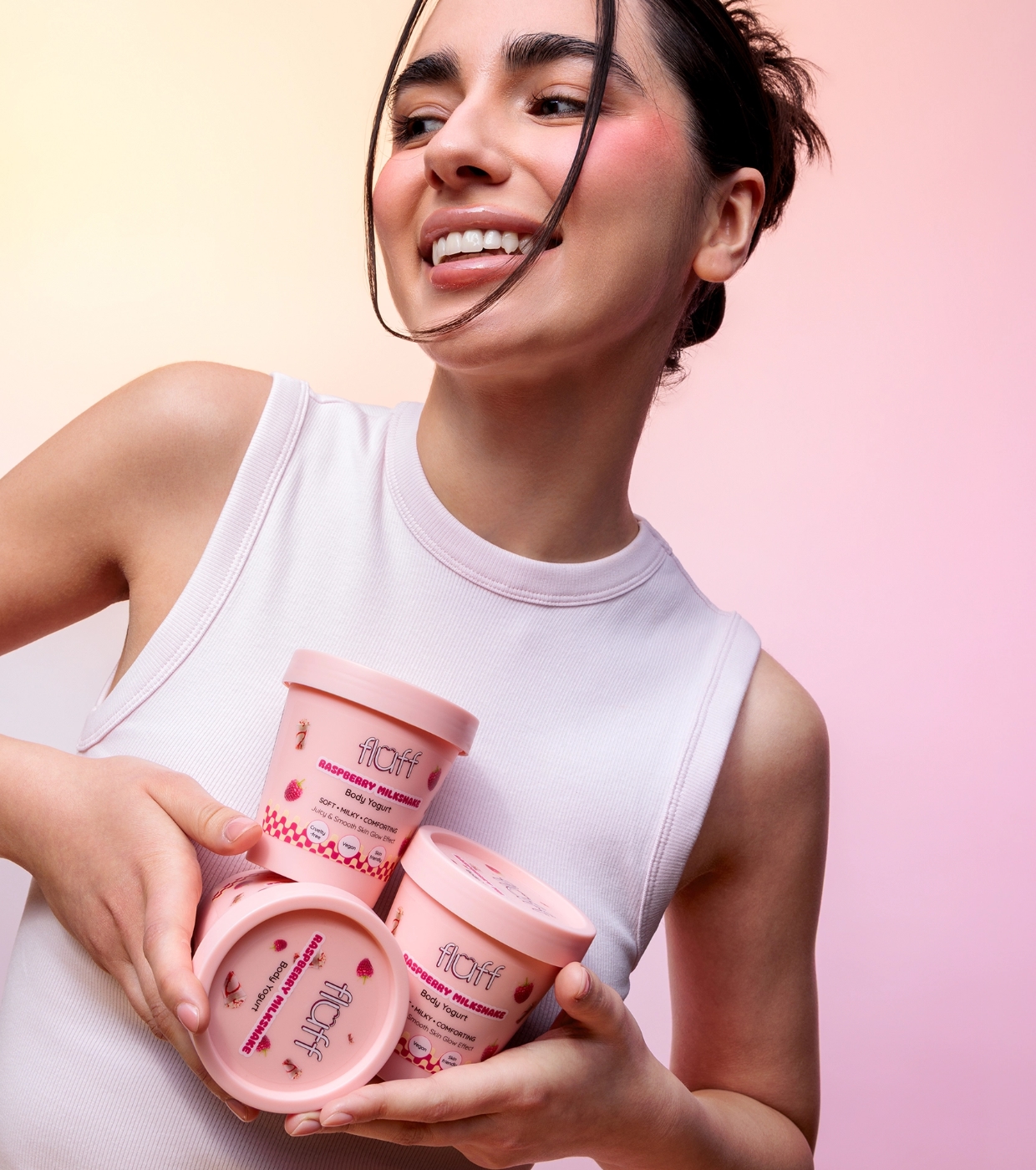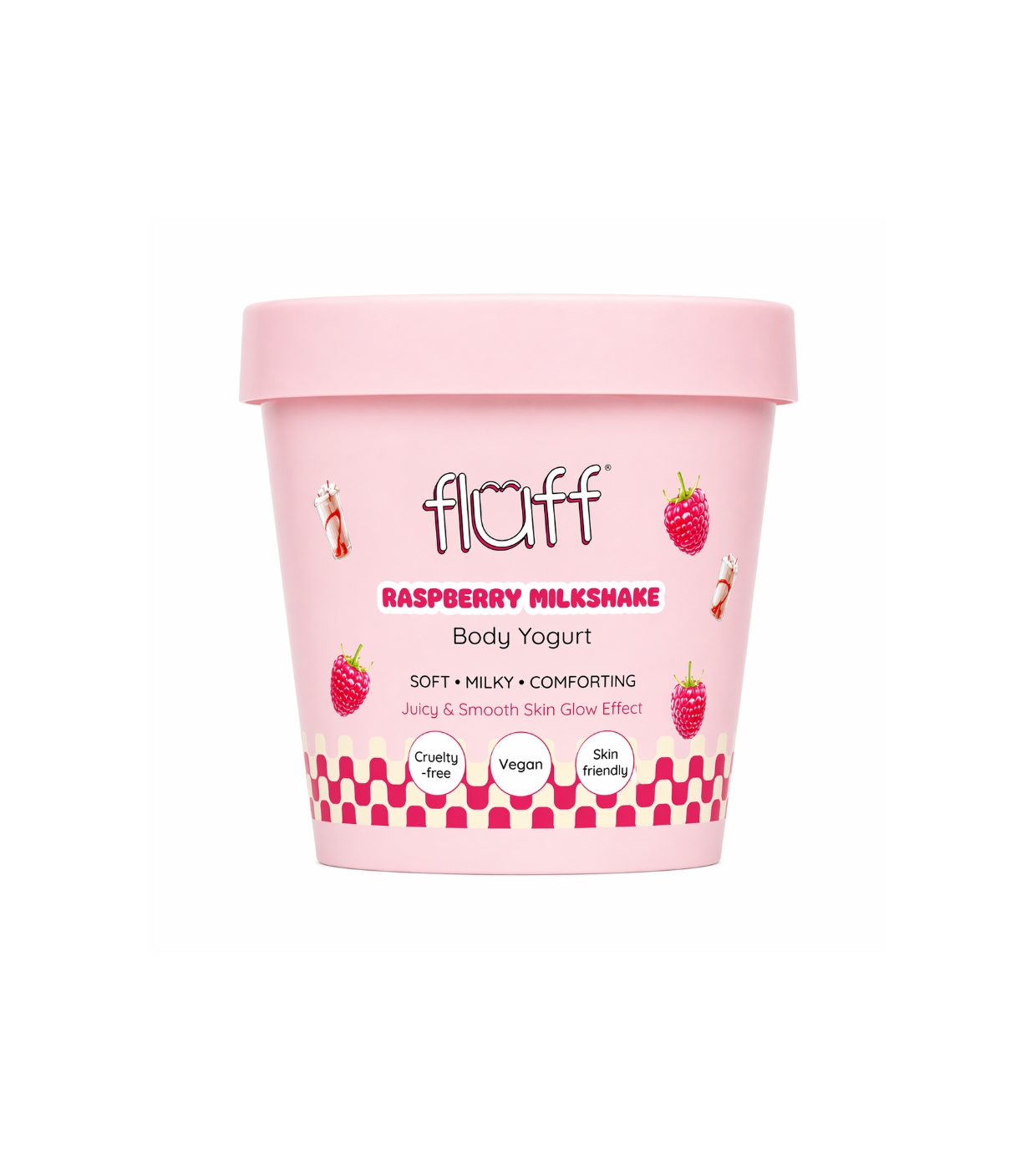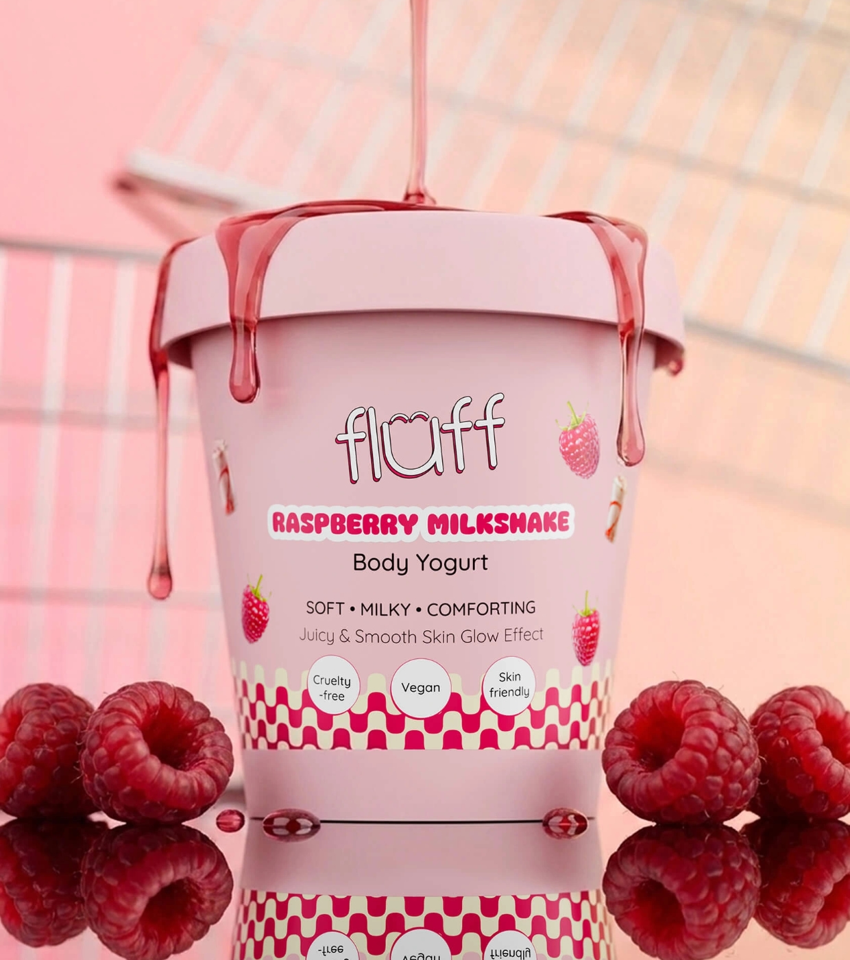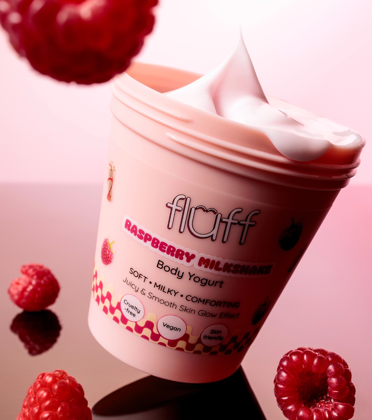 Disfruta de una piel suave, hidratada y deliciosamente perfumada con el yogur corporal Raspberry Milkshake de Fluff, el yogur corporal que cuida tu piel mientras la envuelve en un irresistible aroma dulce a frambuesa.