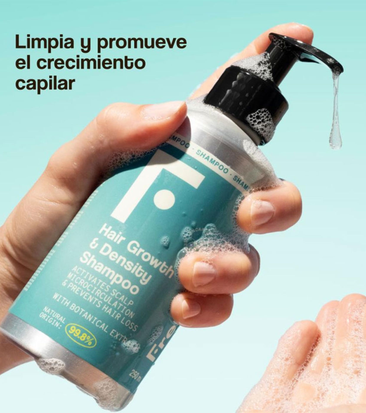 Fortalece tu cabello desde la raíz con el champú Hair Growth & Density de Freshly, un champú anticaída formulado para estimular el crecimiento del cabello y aumentar su densidad sin causar efecto rebote.