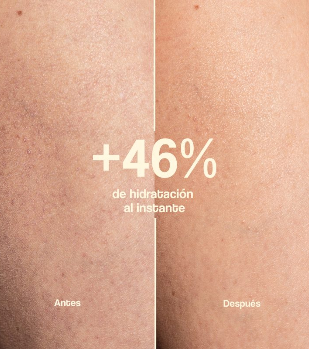 - Hidratación inmediata: +46 % al instante y +56 % incluso después de 21 días