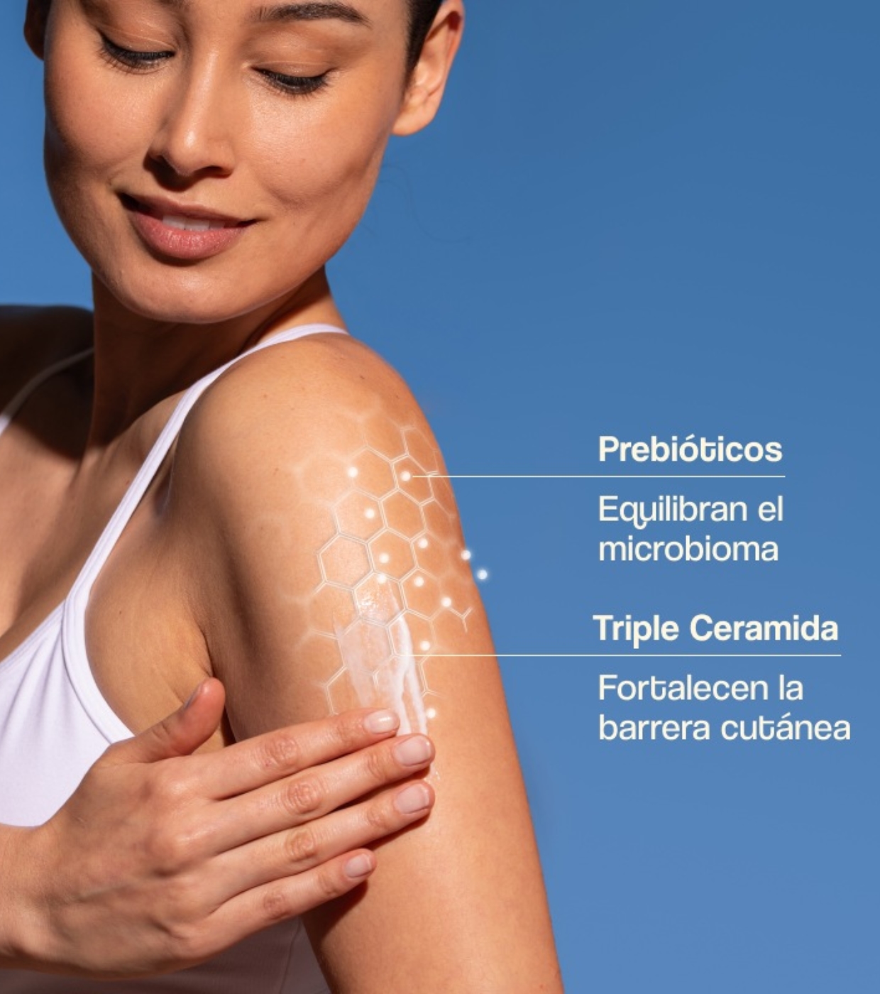 - Protege y restaura: refuerza la barrera cutánea con triple ceramida