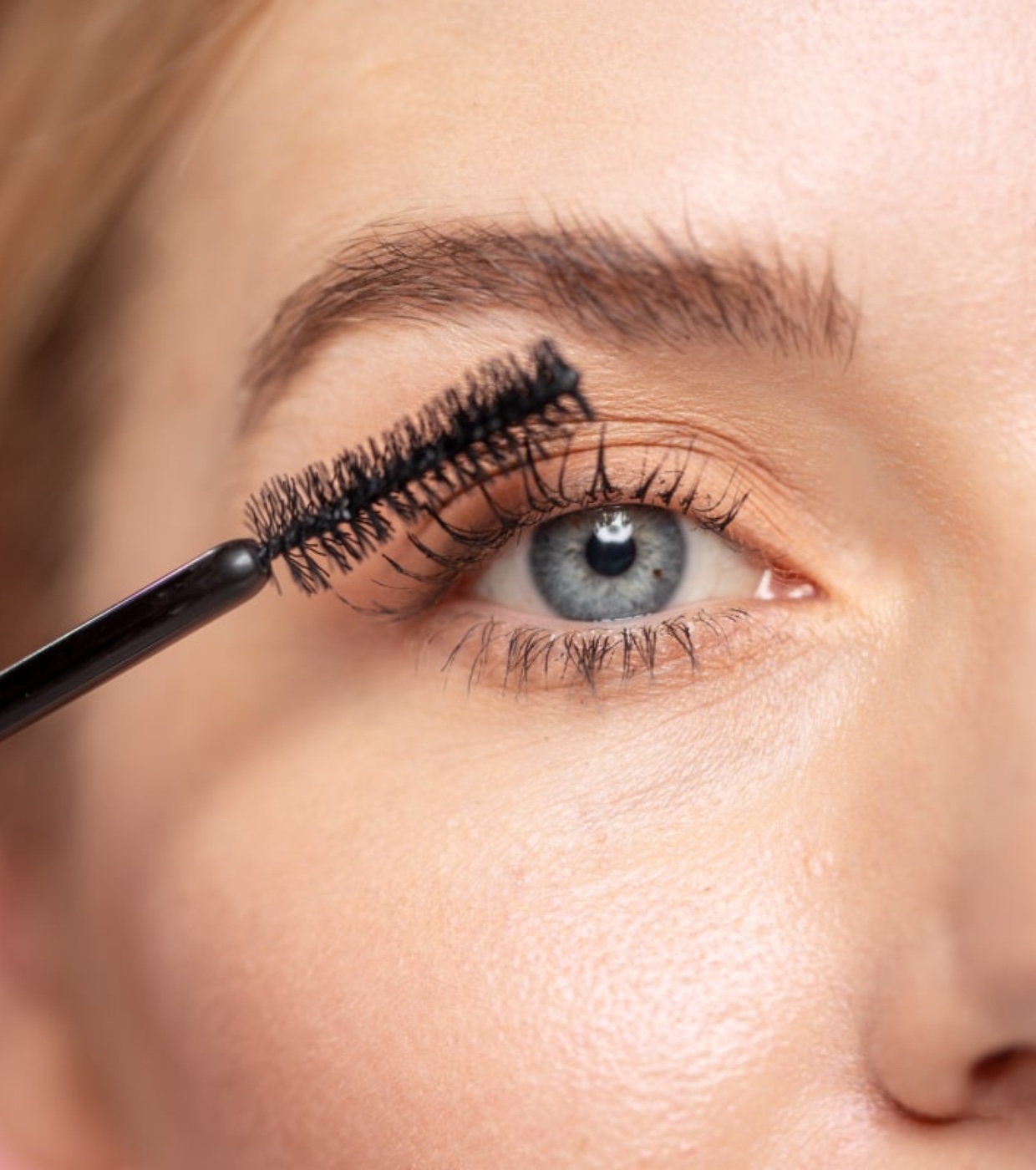 3. Para maquillar las pestañas inferiores coloca el cepillo en horizontal y deslízalo hacia abajo con un ligero zig zag. ¡Solo tienes que acariciar las pestañas! Así evitarás manchas y conseguirás que se vean más tupidas.