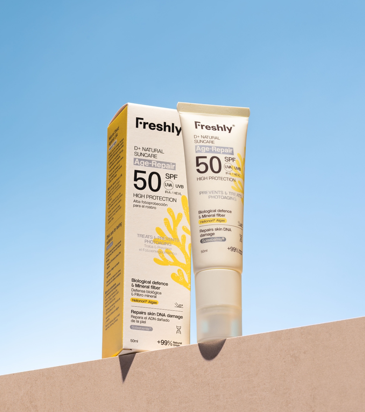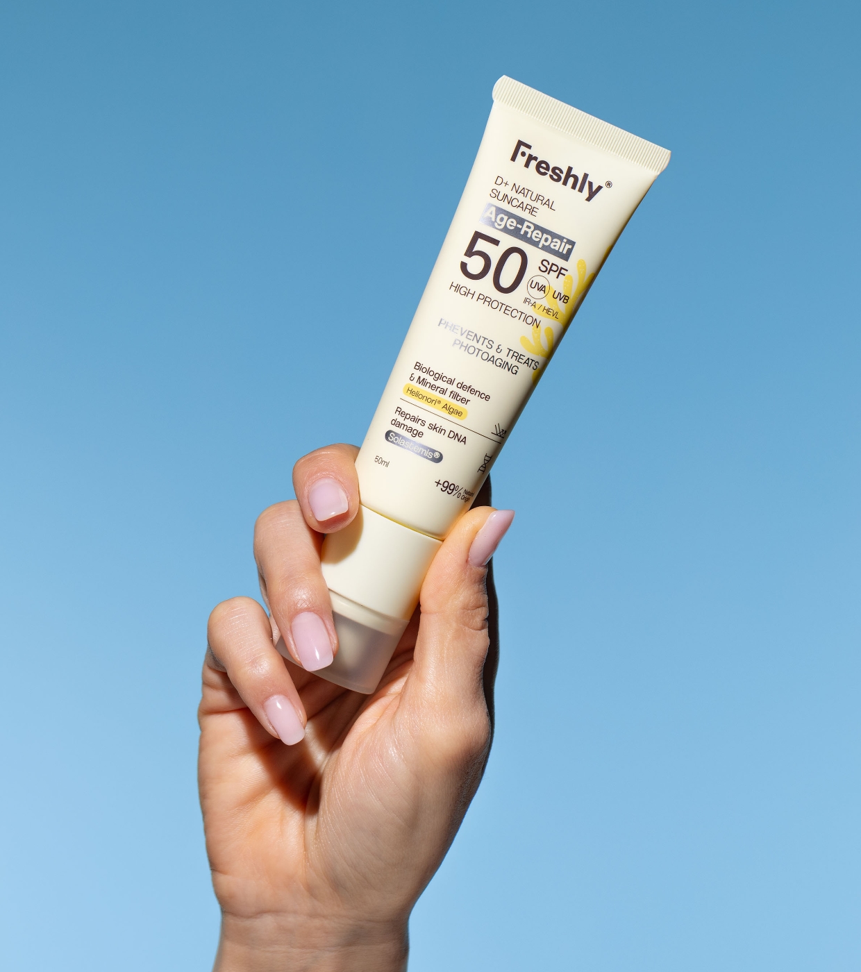 - Alta protección SPF 50 frente a UVA, UVB, luz visible (HEVL) e infrarrojos (IR-A).