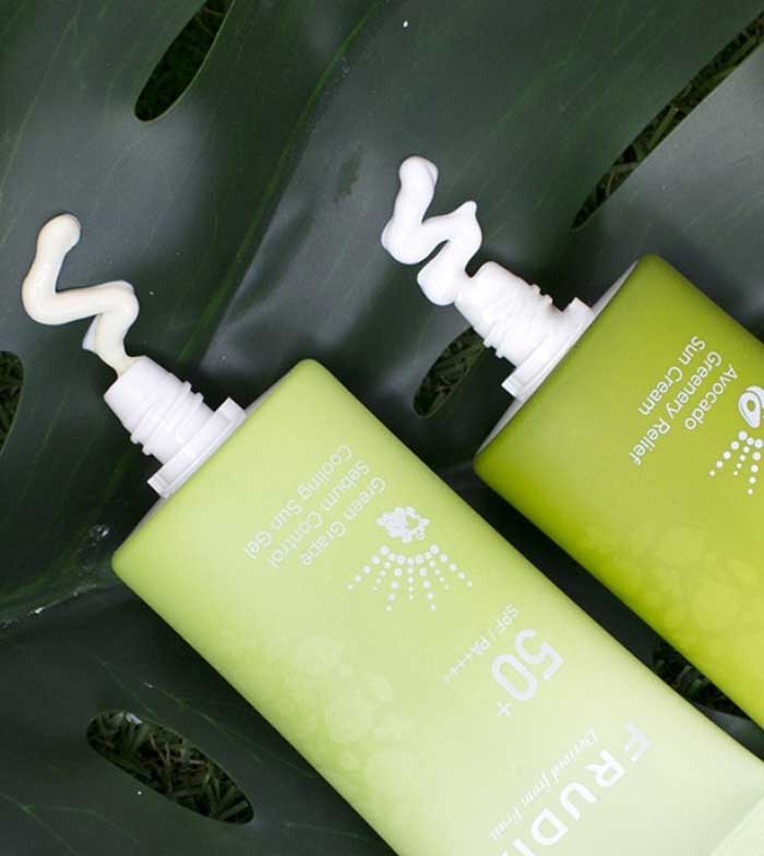 Protector solar rico en extracto de uva verde que ofrece protección contra los rayos UVA y UVB a través de un filtro SPF50+.