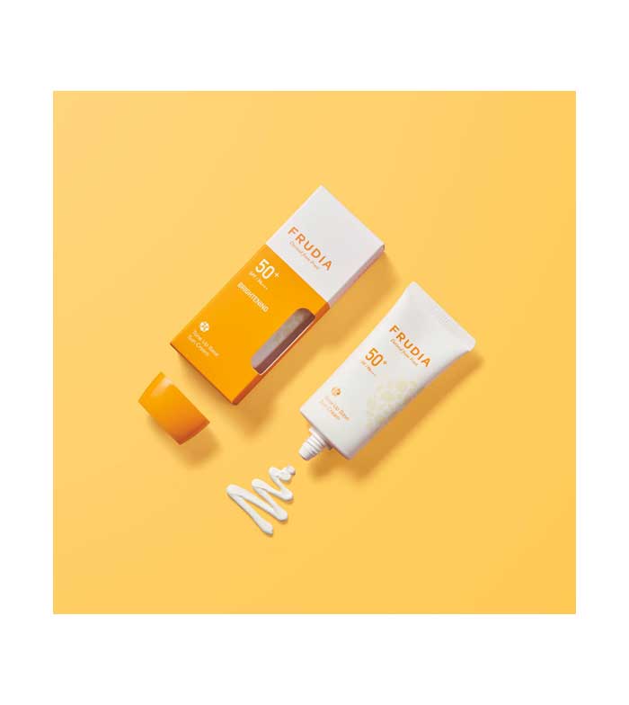 Protector solar facial iluminador SPF50+ Tone Up Base de Frudia.