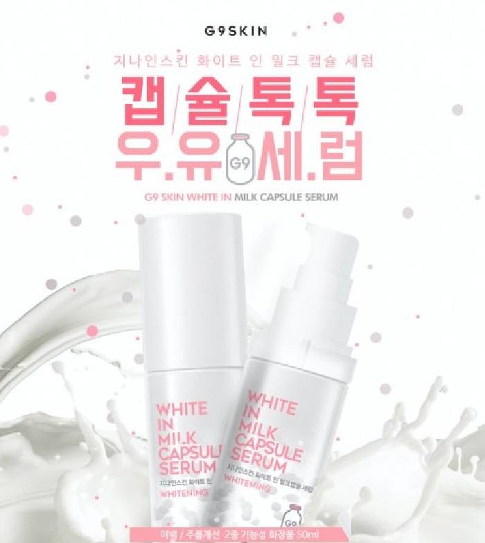 Sérum facial que contiene cápsulas blanqueadoras y una esencia hidratante.
