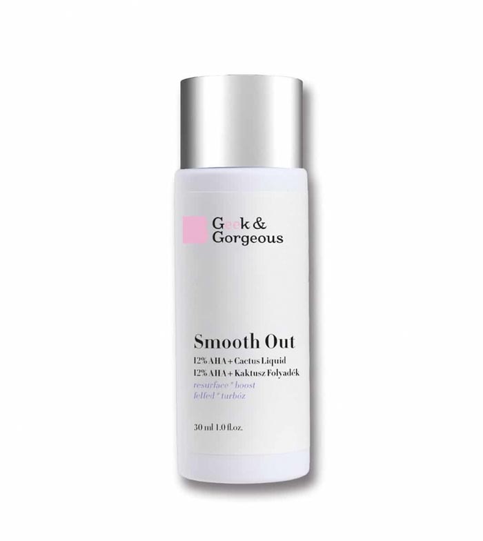 Exfoliante facial 12% AHA + Cactus Nopal Smooth Out de Geek & Gorgeous un exfoliante concentrado antienvejecimiento para una piel más fresca, saludable y bonita.
