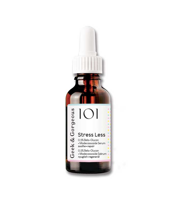 Sérum 0,2% Beta-glucano y 0,3% Madecasósido Stress Less de Geek & Gorgeous de fórmula tipo gel, ligero y sedoso.