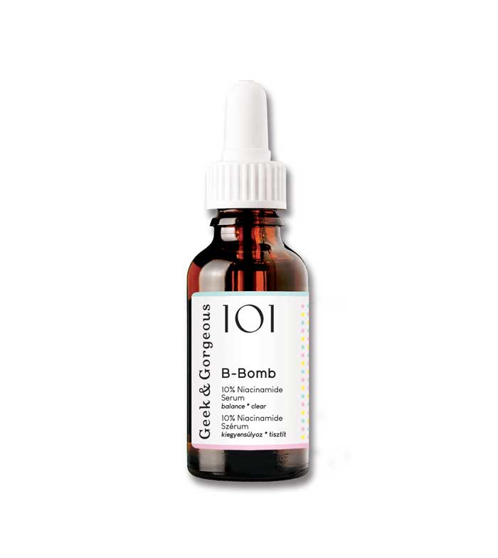 Sérum 10% niacinamida B-Bomb de Geek & Gorgeous de fórmula ligera e hidratante.