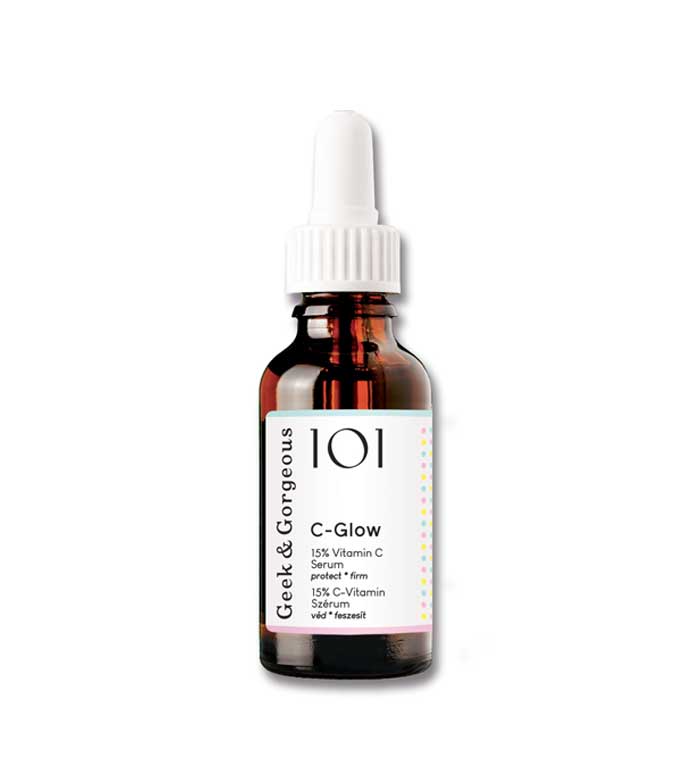 Sérum 15% vitamina C C-Glow de Geek & Gorgeous de fórmula súper ligera, similar al agua.